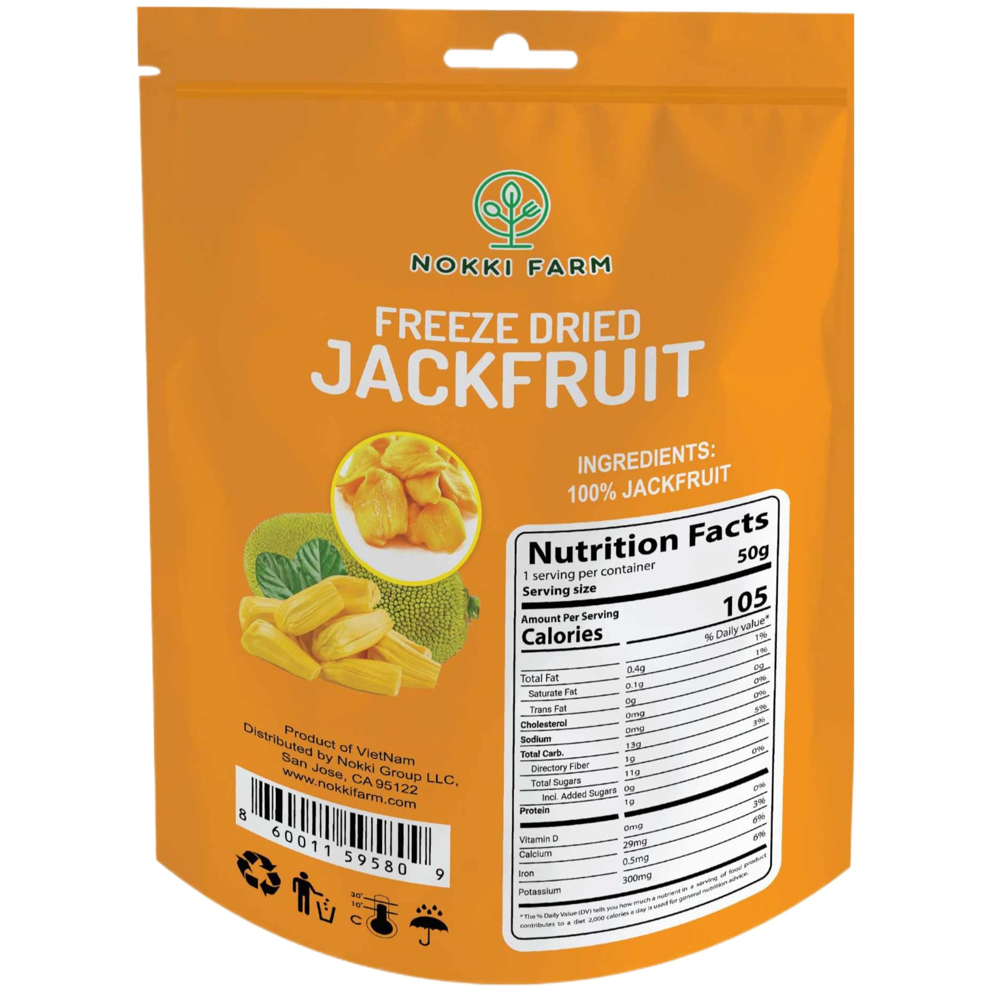 - Q: How can I incorporate freeze dried jackfruit chips into my diet? A: You can enjoy NOKKI FARM Freeze Dried Jackfruit Chips straight out of the bag for a crunchy snack or add them to trail mixes, smoothies, or your favorite snack recipes for added flavor and nutrition.