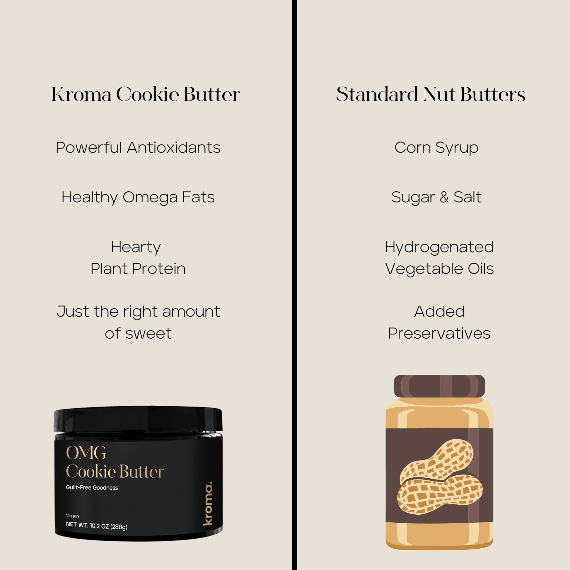 KROMA. OMG Cookie Butter (10.2 Oz), Gluten Free Vegan Snacks, Nut Butter Spread Made with Raw Almond Butter, Coconut Butter, Cho