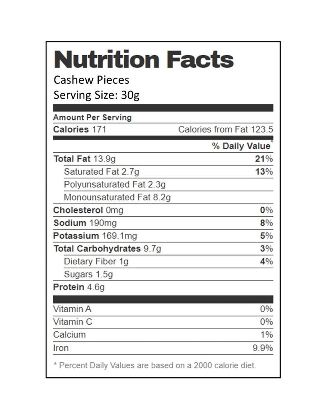 - Q: What is the weight of the AIVA Cashew Pieces package? A: The AIVA Cashew Pieces come in a generous ten-pound bulk pack, making them ideal for families, frequent cooks, or catering purposes.