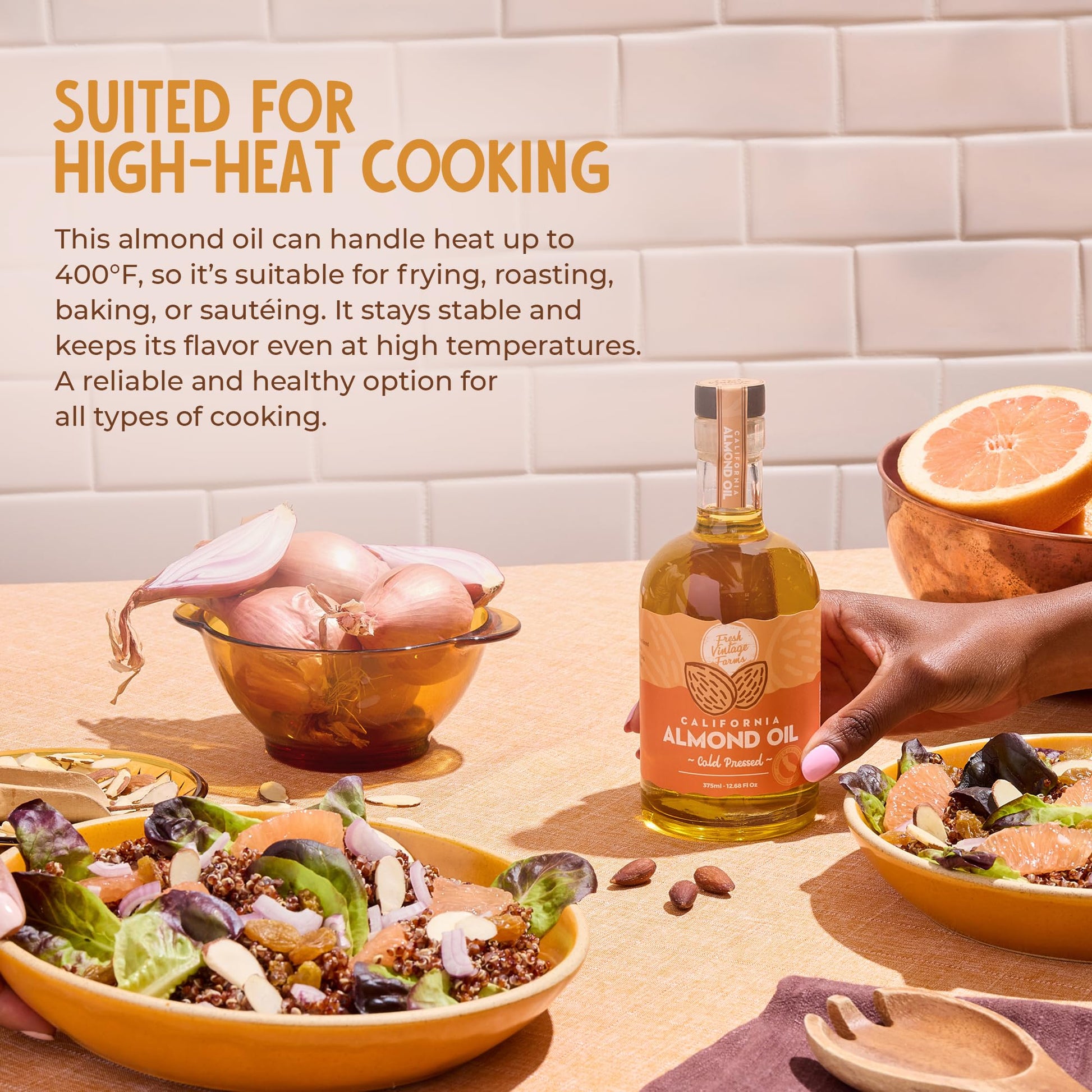 - Q: What is the flavor profile of Fresh Vintage Farms Almond Oil? A: The almond oil has a delightful and distinctive nutty flavor, adding an aromatic touch to both sweet and savory dishes.