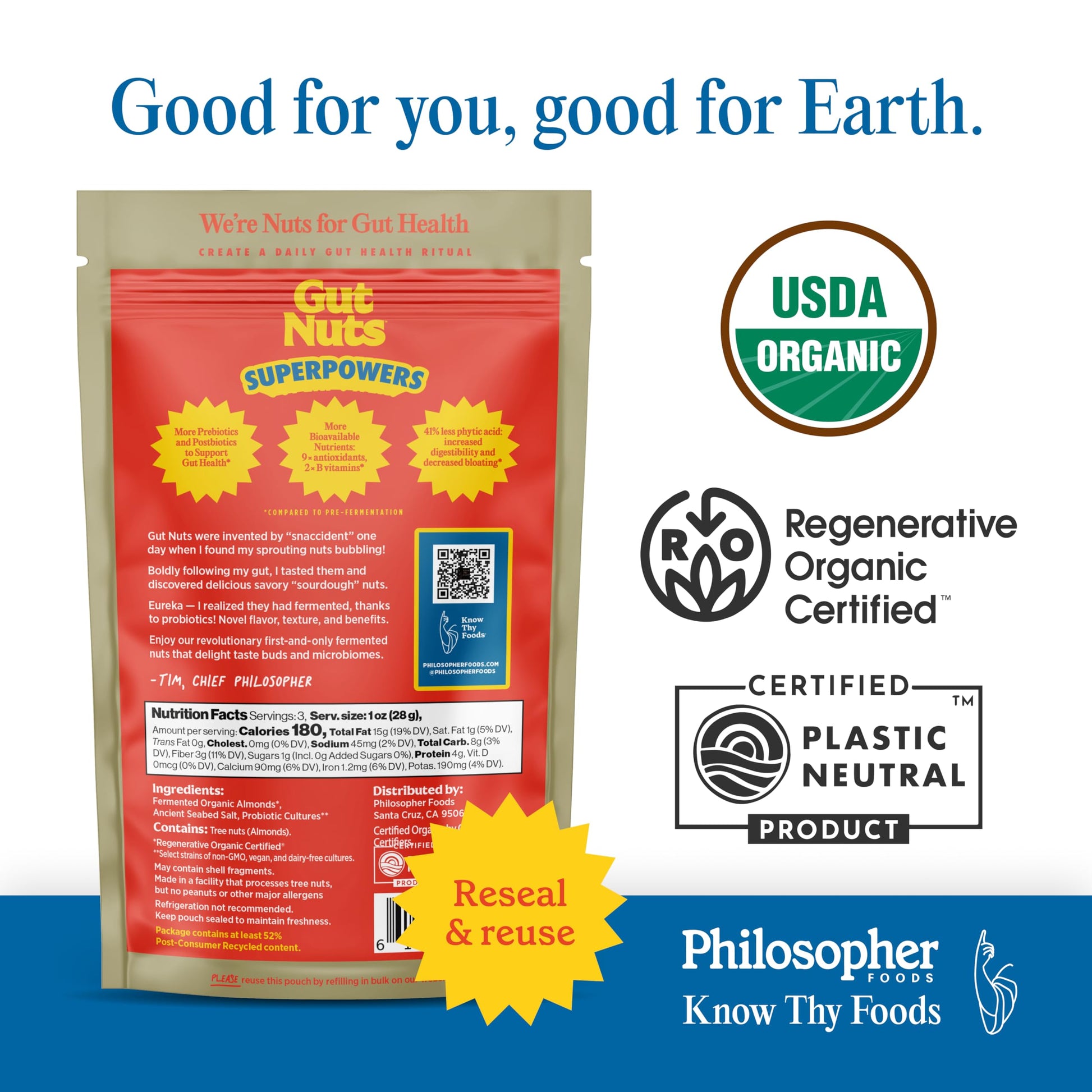 Explosion of Flavor: Enjoy a satisfying crunch as these fermented almonds shatter in your mouth, releasing a burst of tangy, savory, and umami flavors that excite every taste bud | Nutrient-Dense Snacking: Compared to unfermented almonds, Gut Nuts offer 2x the B vitamins, 9x the antioxidants, and 41% less phytic acid, which makes them more digestible and less likely to cause bloating. A perfect low-carb, keto-friendly snack to keep you energized and satiated throughout the day | Gut Health Powerhouse: Rich in both prebiotics and postbiotics, our fermented almonds may support gut health by delivering beneficial compounds resulting from fermentation, all while ensuring shelf-stability and snackability from dehydration | Versatile and Convenient: Whether youre enjoying them at home, during a road trip, while exercising, at a party, or in the office, these fermented almonds are the ideal savory snack for any occasion, from gameday to a quick midday pick-me-up | Quality and Freshness Guaranteed: This package includes three 3oz pouches of Gut Nuts Fermented Almonds, carefully sealed in a resealable pouch to preserve their flavor and crunch, ensuring a delightful snacking experience every time