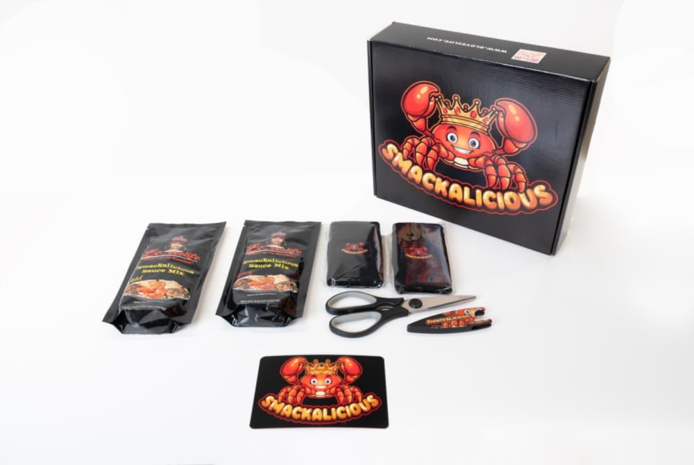 This gift box also includes two logoed 6 wristbands, offering a stylish way to show your love for Bloves Smackalicious brand while serving as a practical solution for messy seafood meals. Finally, each gift box comes with an autographed message card from Blove herself, ensuring a personal touch that makes this gift even more special and unique.