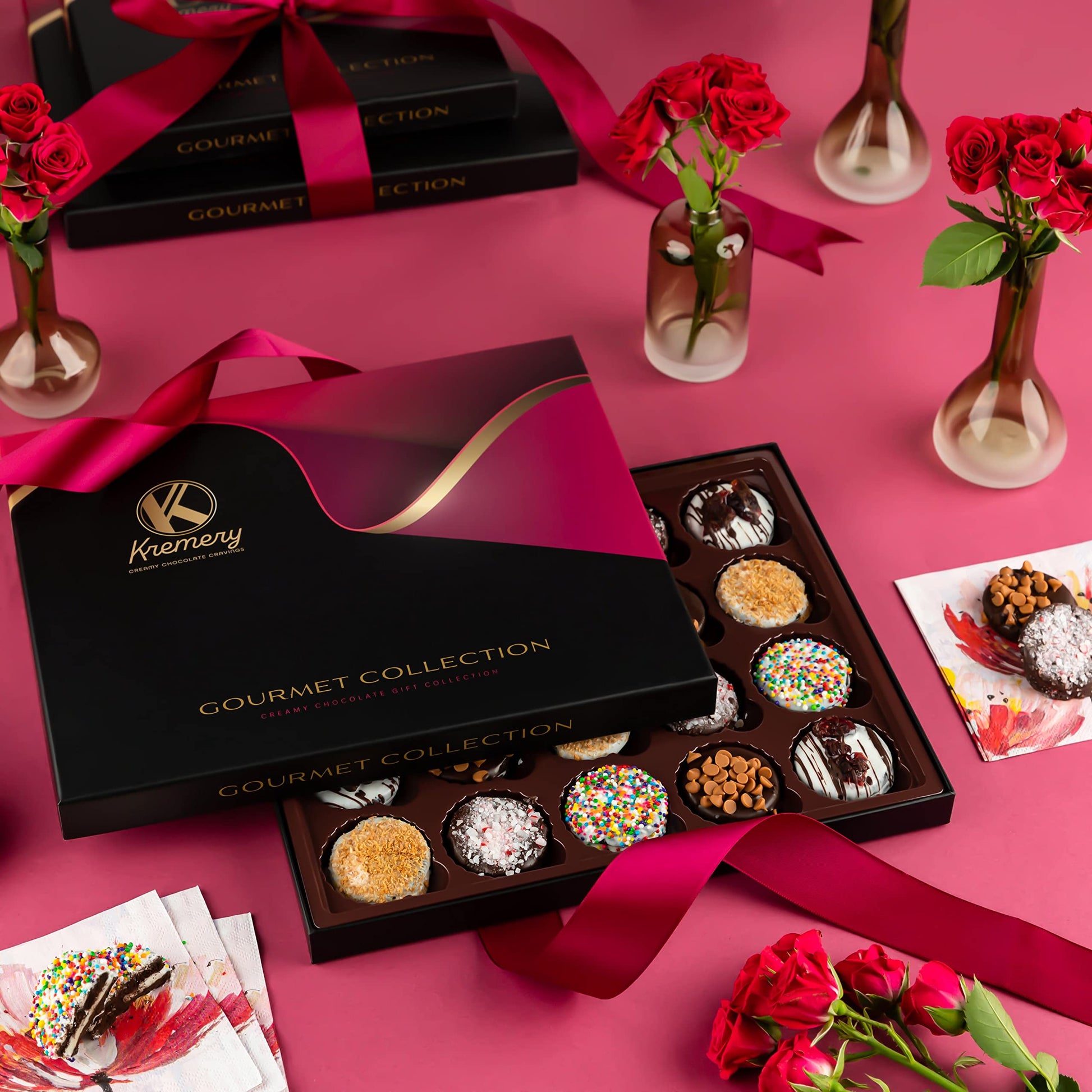 Kremery Presents Our Most Delicious And Elegant Gift Box. A Delicate Selection Of Our Most Creamy Dairy-Free Chocolate-Covered Cookies Packed In An Elegant Ready-To-Gift High-Quality Box To Impress Even The Most Demanding Gift Recipients. Were You Looking For The Perfect Gift? Look No Further. Our Gourmet Chocolate Covered Sandwich Cookies Gift Box Is The Perfect Choice For A Holiday Gift, A Hostess Gift, A Corporate Gift You Name It! Why Is It The Perfect Gift, You Ask? Three Words: Elegant. Delicious. Affordable. More Details? Ok, Let'S Give You Some Details. The Kremery Chocolate Covered Cookies Dessert Box Contains 6 Types Of Our Signature Chocolate Dipped Cookies: - Colorful Sprinkles - Peppermint Candy - Coconut - Chocolate Chips - Dried Cranberries - Dried Apricots Yes, We Know What Really Counts Is What'S On The Inside. But We Do Care About The Outside As Well, Right? Well, Have You Heard About Our Elegant Ready-To-Gift Arrangement? - High-End Ready-To-Gift Box. - Elegant Uniquely Black, Maroon & Gold Box. Kremery Is A Company Based In The Usa And Our Cookies Are Also Proudly Made In The Usa To Ensure They'Re Made With The Best Quality Ingredients In The Market. Our Commitment To Our Consumers Is To Deliver The Best And Most Delicious And Creamy Chocolate Dipped Cookies In The Market. Are You Ready To Join The Kremery Family?