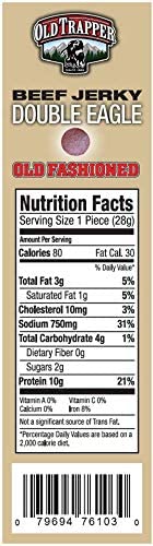 - Q: What is included in the Old Trapper Double Eagle Beef Jerky Gift Set? A: The Old Trapper Double Eagle Beef Jerky Gift Set includes two packs of beef jerky, one featuring the Old Fashioned flavor and the other the Spicy flavor, along with a bonus Old Trapper magnet.