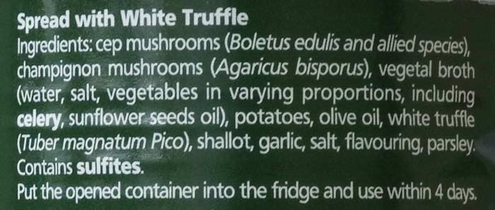 - Q: What are the main ingredients in Terre di Tartufo White Truffle Sauce? A: The main ingredients in Terre di Tartufo White Truffle Sauce include cep mushrooms, champignon mushrooms, vegetal broth, potatoes, olive oil, white truffle (tuber magnatum pico), shallot, garlic, salt, flavoring, and parsley. These ingredients are carefully blended to create a rich and flavorful sauce.