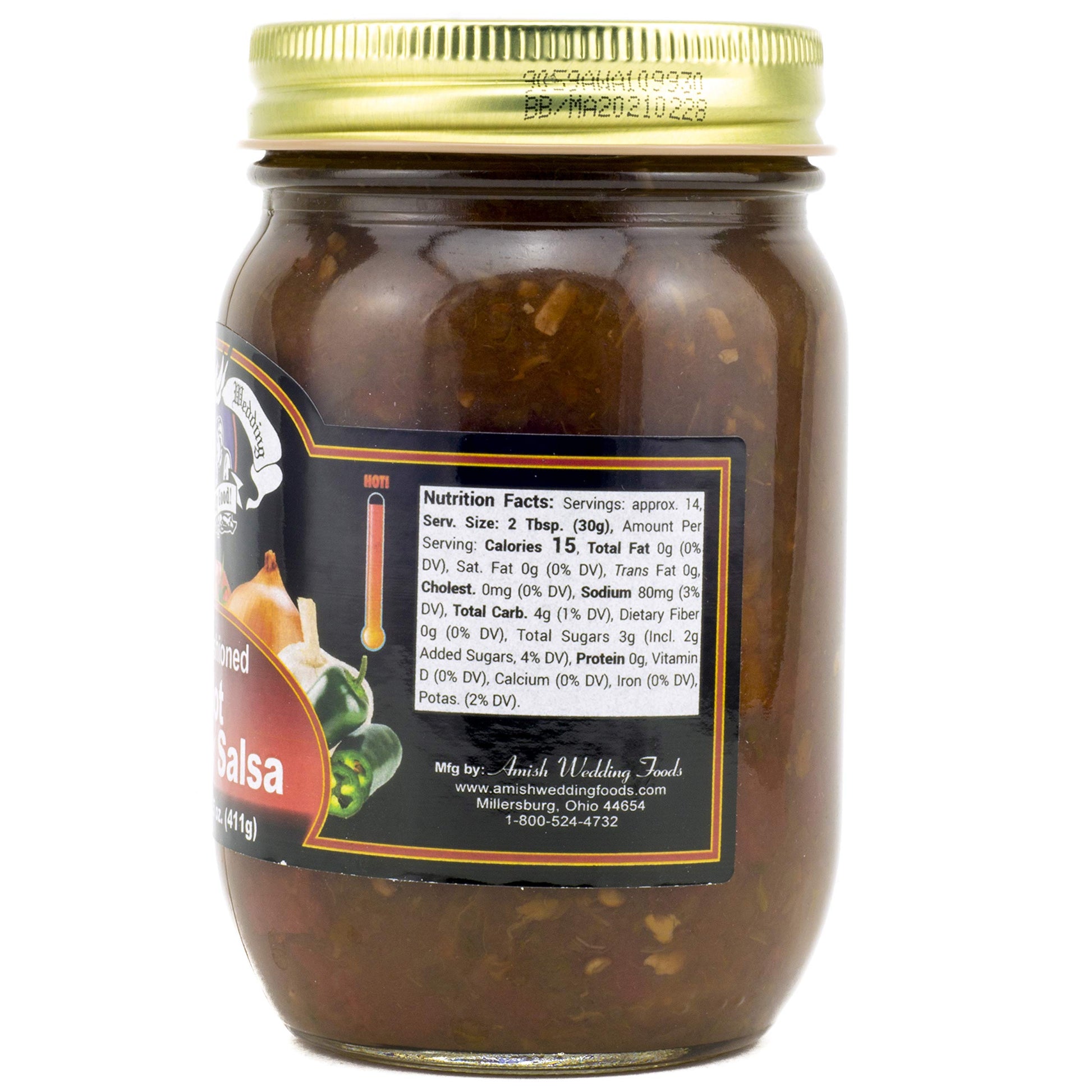 - Q: What makes Amish Wedding Kettle Cooked Salsa different from other salsas? A: This salsa is kettle cooked to create a thick, chunky texture that is both hearty and satisfying. Additionally, it is locally crafted in Ohio's Amish Country using only the finest natural ingredients, ensuring a unique and authentic flavor.