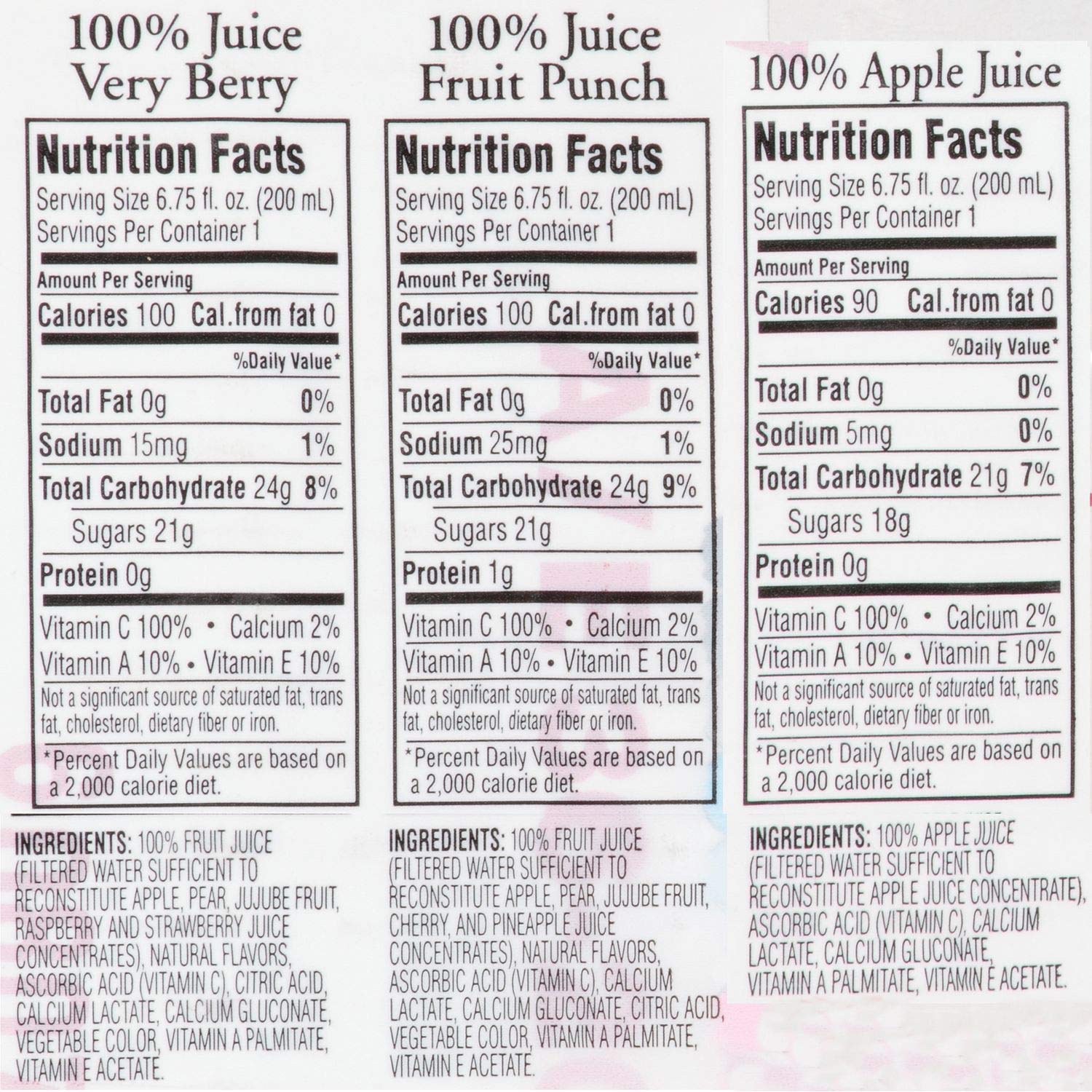 The Apple & Eve 100% Juice Variety Pack makes it easy to quench your familys thirst while also providing them with their daily recommended requirement of vitamin C. Theres no added sugar, making it a naturally sweet drink. This pack of juice boxes comes with three tasty flavors.