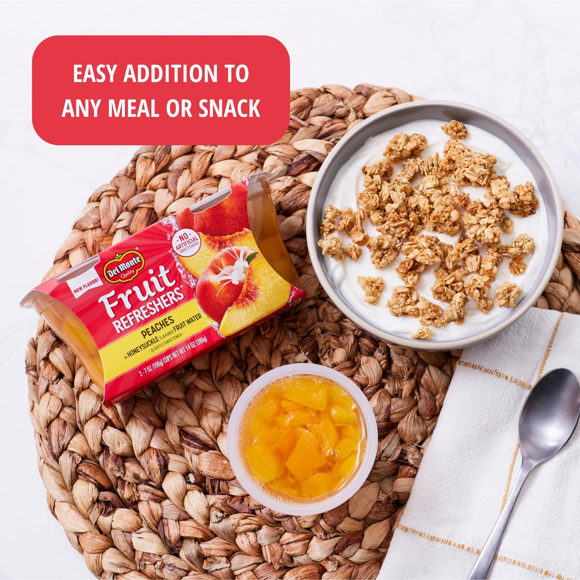 DEL MONTE FRUIT REFRESHERS Red Grapefruit FRUIT CUP Snacks are packed with succulent red grapefruit pieces mixed with slightly sweetened guava flavored fruit water for a tasty tropical flavored fruit snack. Each FRUIT CUP contains 90 calories and has one serving of fruit* for a delightful snack you can feel good about enjoying. These Non-GMO** grapefruit cups contain no high-fructose corn syrup, artificial sweeteners or artificial flavors. Packaged in individual cups, are the perfect after school snack. Each FRUIT CUP is easy to toss in a lunchbox, desk drawer or vehicle cupholder for a quick, nourishing fruit snack. DEL MONTE FRUIT REFRESHERS are packaged in Non-BPA*** plastic cups that feature peel off lids that are easy to open. Bring goodness to your family with . *Each container has one serving (1/2 cup) fruit per USDA Nutrient Data. **Ingredients of the types used in this product are not genetically modified. ***Packaging produced without the intentional addition of BPA.
