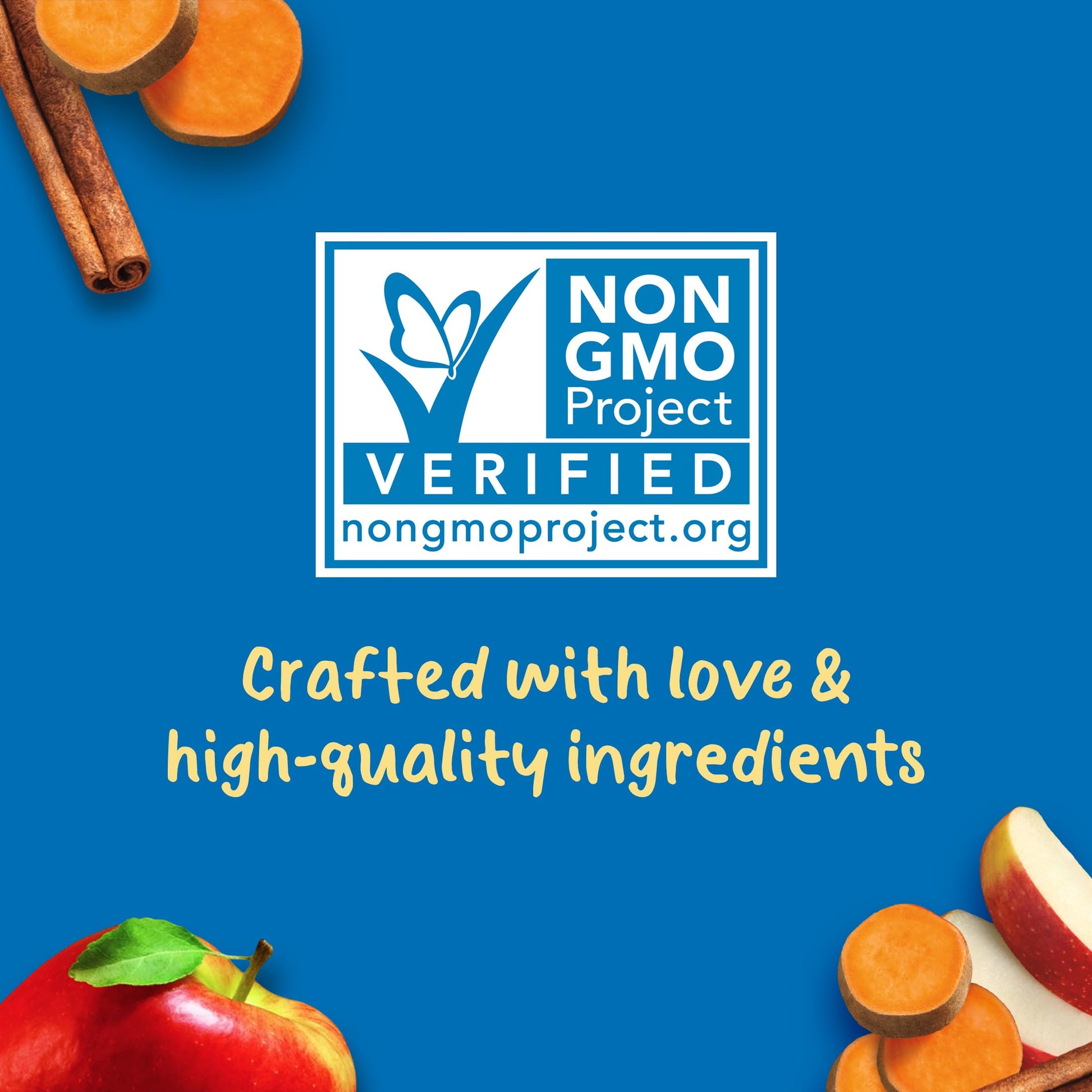 Gerber Apple Sweet Potato With Cinnamon Toddler Food Is A Delicious Veggie And Fruit Puree That Makes It Easier For Toddlers To Feed Themselves. Each Gerber Food Toddler Pouch Provides Two Fruit And Veggie Servings From 3/4 Apple And 1 Tablespoon Sweet Potato Plus Cinnamon For A Tantalizing Flavor. Made With Non-Gmo Ingredients, This Gerber Puree Contains No Artificial Colors, Flavors Or Sweeteners And No Added Starch Or Salt. Toddler Food Pouches With Clear Windows Let You See The Goodness Inside, And They Fit Perfectly Into Tiny Hands To Encourage Your Little One To Improve Feeding Skills. The Smart Flow Spout On The Baby Food Pouch Gives Your Toddler Better Control With Fewer Messes. Toss Pouches In Your Diaper Bag So You Can Feed Your Toddler Easily On The Go Right From The Pouch.