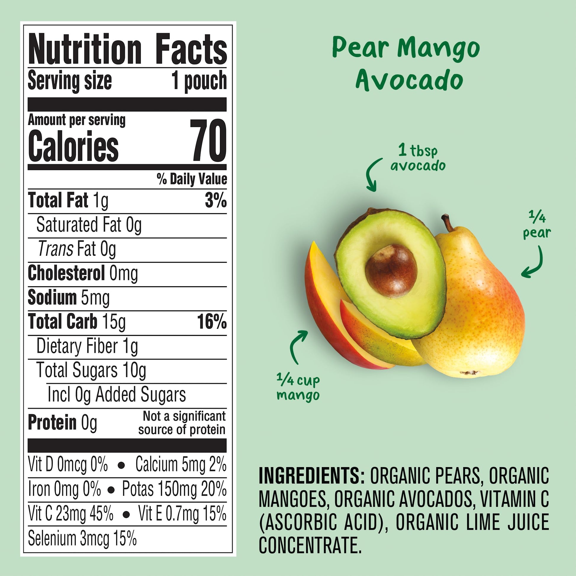 Q: How many pouches are included in the Gerber Organic For Baby 2nd Foods Variety Pack?A: The variety pack includes a total of 18 pouches, with 3 each of Carrot Apple Mango, Mango Peach Carrot Sweet Potato Oatmeal, and Pear Mango Avocado.
