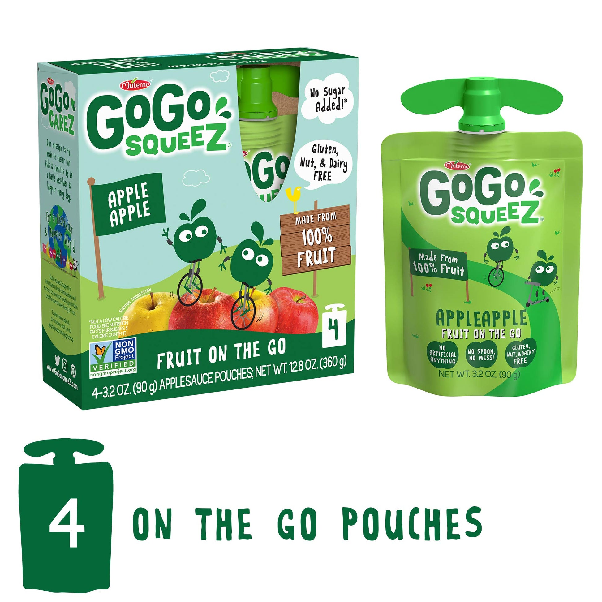Q: What are the ingredients in GoGo squeeZ Applesauce?A: GoGo squeeZ Applesauce is made from 100% fruit, ensuring it is unsweetened and contains no added colors, flavors, or high fructose corn syrup.