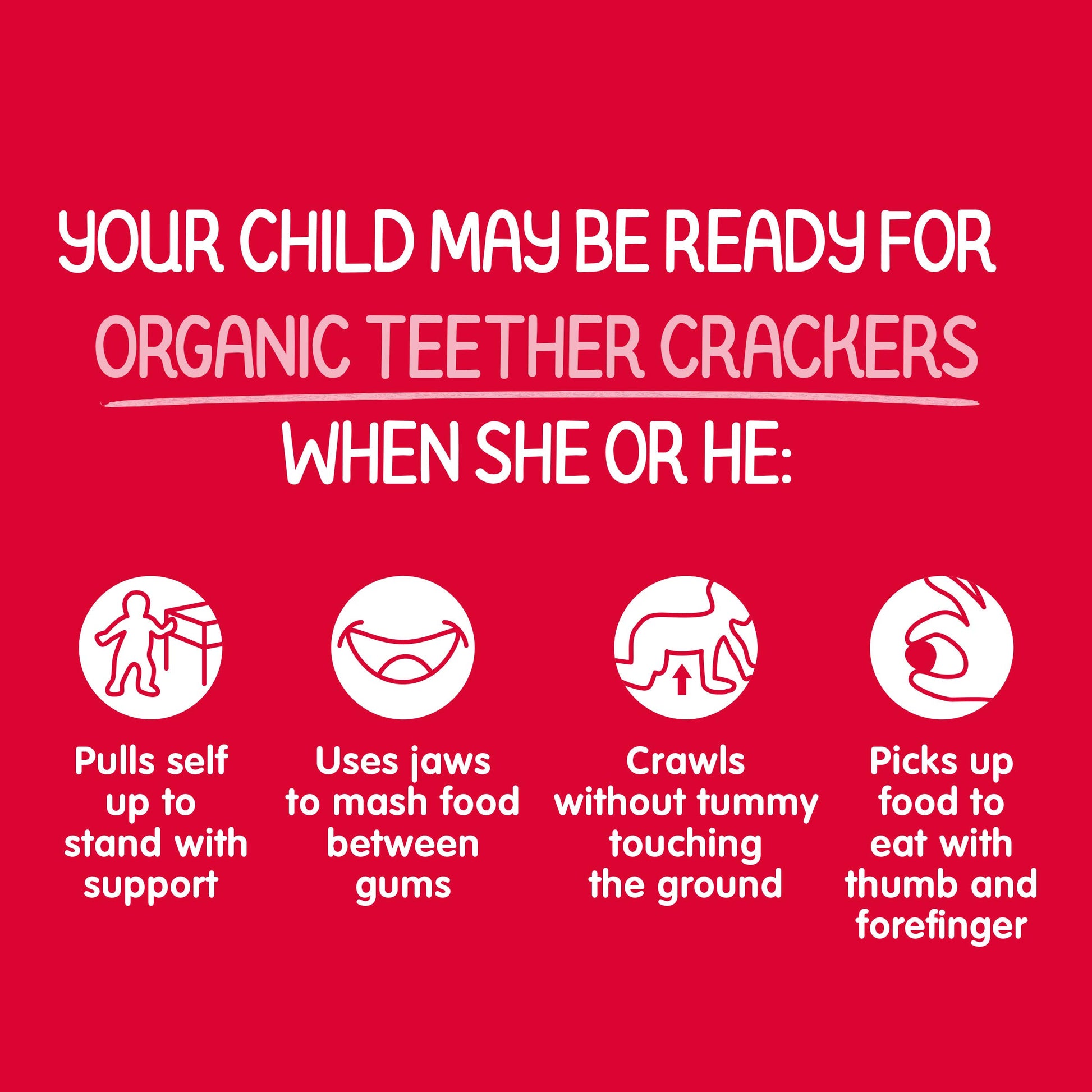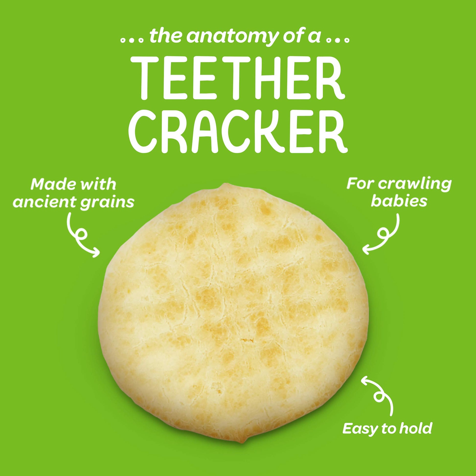 Q: How many teething crackers are in a pack, and what is their size?A: Each pack contains 12 count teething crackers, and the total package weighs 1.7 ounces, making it a convenient option for on-the-go snacking.