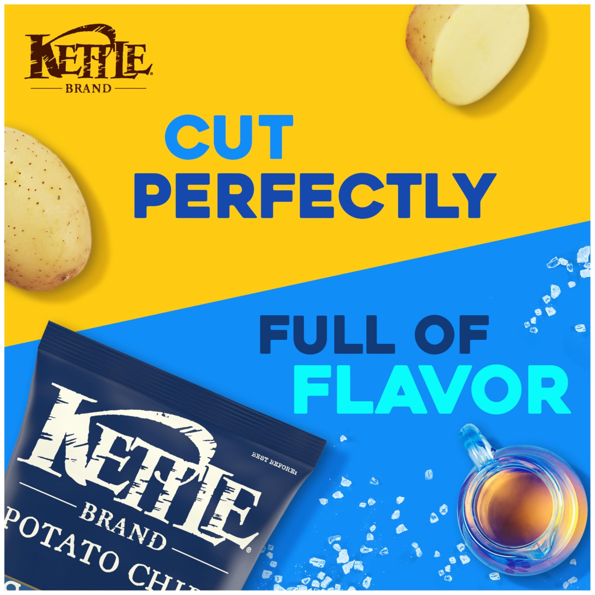 Give your taste buds tangy excitement with Kettle Brand Sea Salt and Vinegar Kettle Potato Chips. These kettle cooked sea salt and vinegar chips have a bold flavor that strikes a delicate balance between zesty sea salt and tongue-puckering vinegar. They re flavored right past the point of bold and every bite will make your eyes water tears of vinegar-loving joy. Cut perfectly from whole potatoes, Kettle Brand Sea Salt and Vinegar kettle chips deliver the delightful crunch you crave. All of our kettle cooked chips are Certified Gluten Free and Non-GMO. This 7.5-ounce bag contains about 8 servings and is perfect for stashing in your pantry. Enjoy these salt and vinegar potato chips on their own or as a side with sandwiches, burgers and more. When you open a bag of Kettle Brand chips, you know you re getting incredible kettle cooked potato chips made with authentic recipes by real people. In addition to Sea Salt and Vinegar, Kettle Brand gluten free chips are available in a wide range of flavors including Honey Dijon, Farmstead Ranch and Backyard Barbeque. No matter the recipe, every hearty bite of Kettle Brand chips is packed with irresistibly bold flavor.