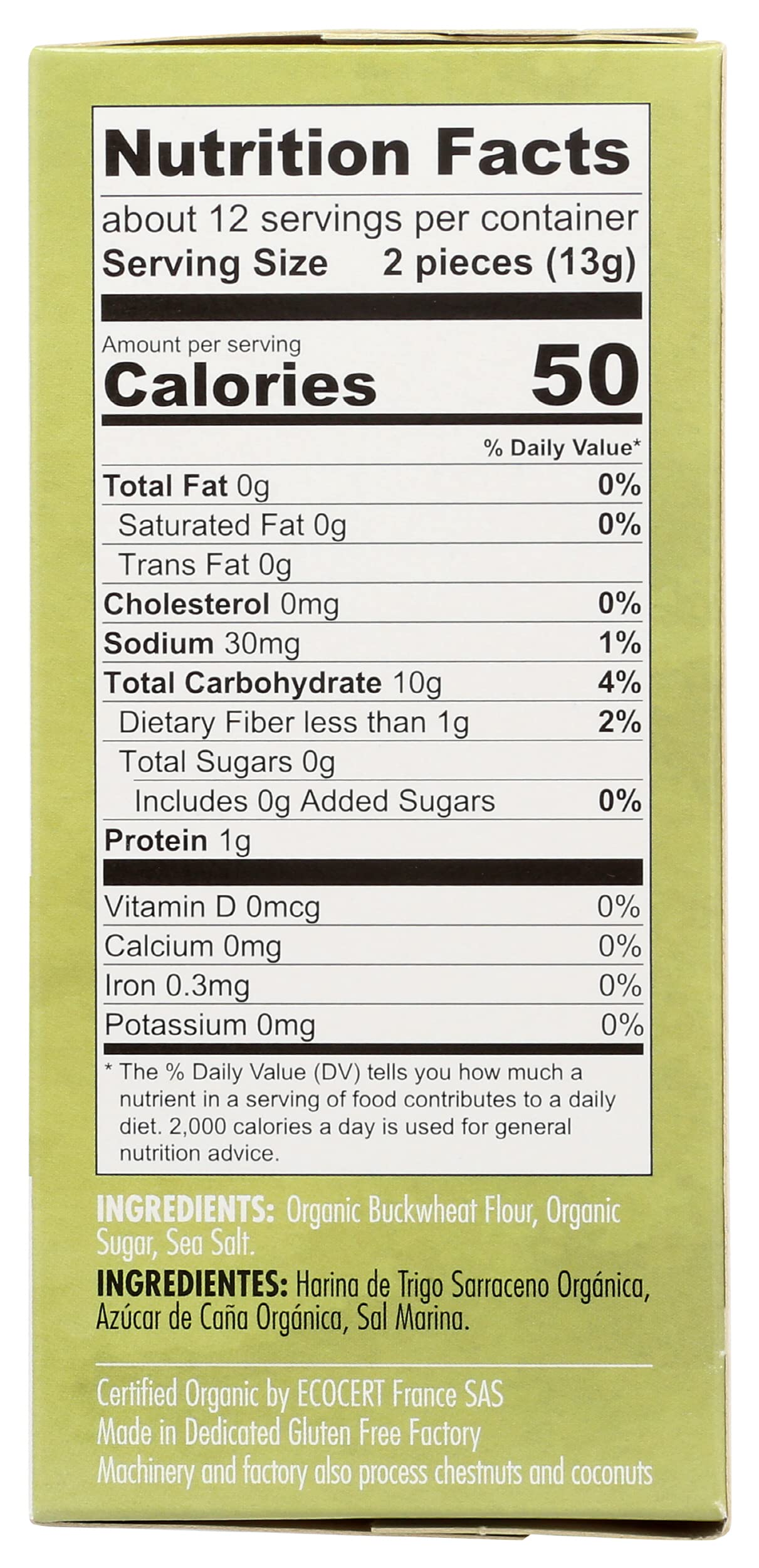 Q: What are the main ingredients in Le Pain des Fleurs Crispbread?A: Le Pain des Fleurs Crispbread is made primarily from buckwheat, comprising over 98% of the ingredients. It is crafted with 100% organic components and is free from gluten, GMOs, and cholesterol.
