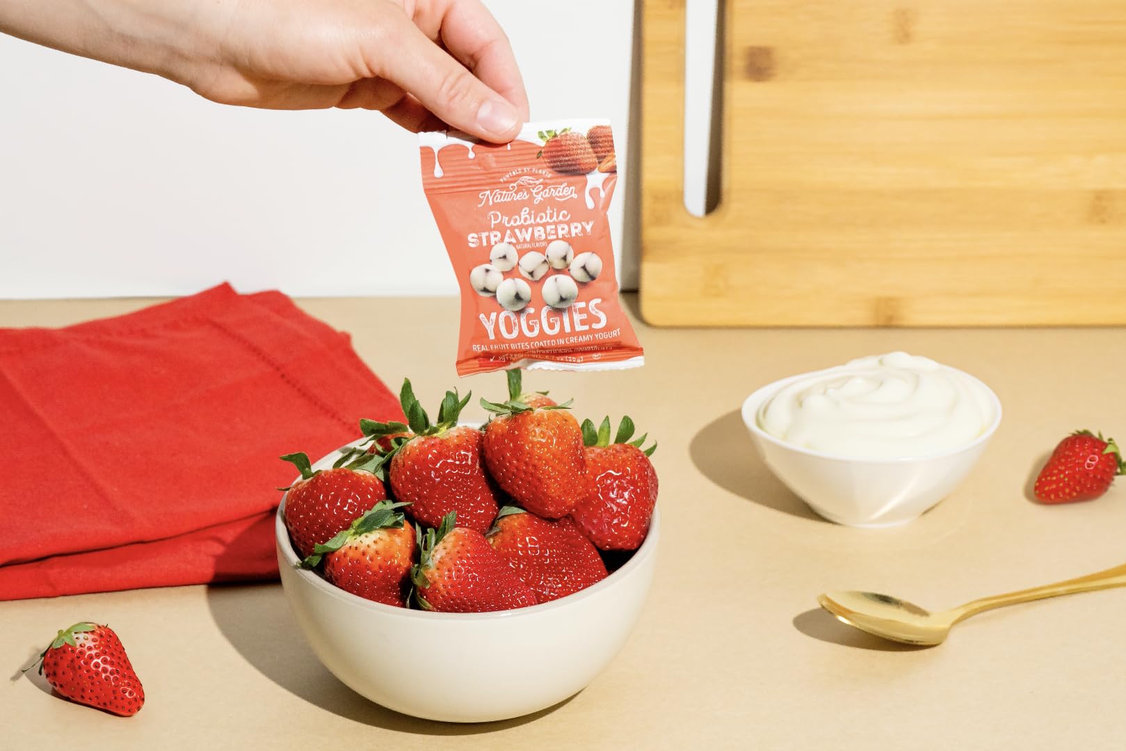 Real fruit and creamy, natural yogurt in a bite-sized snack need we say more? Reap the wonders of billions of probiotics with Natures Garden Probiotic Strawberry Yoggies - a snack thats delicious and functional for the whole family. Chow down with this healthier-for-you treat thats creamy, chewy, and crazy delicious.