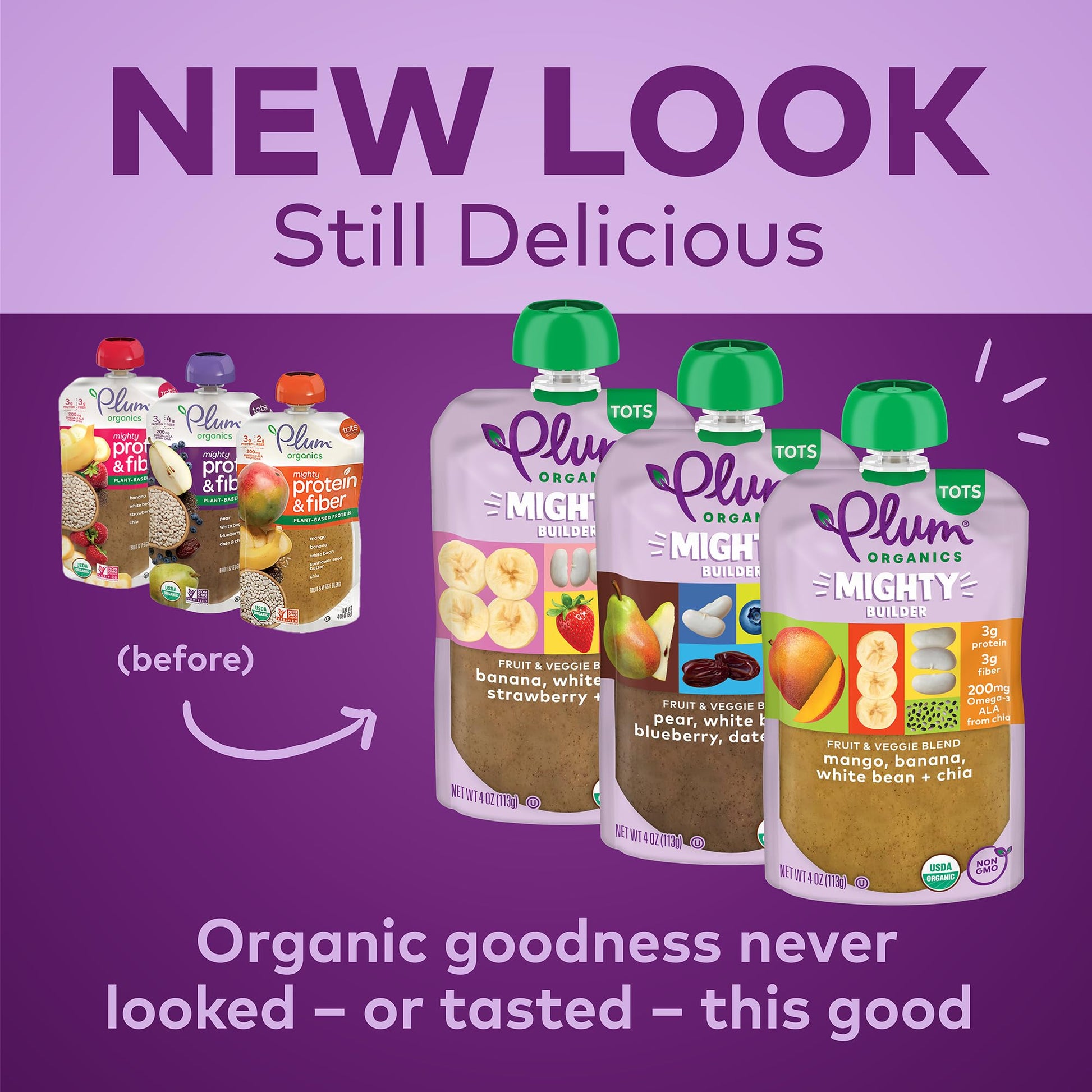 Mighty Blends For A Mighty Toddler. Plum Organics Mighty Builder Blends Are Filled With Organic Fruits, Veggies, And Seeds For The Perfect Snack To Fuel Your Active Toddler. Our Mango, Banana, White Bean, And Chia Blend, Pear, White Bean, Blueberry, Date, And Chia Blend, And Banana, White Bean, Strawberry, And Chia Blend Are Each Made With Non-Gmo, Organic Ingredients For An Organic Toddler Food That Your Toddler Will Love. Our Plum Organics Pouches Are Naturally Preserved, Unsalted, Unsweetened, And Kosher Parve. And Since Our Baby Food Pouches Are Convenient, Portable, And Resealable, You Can Customize Portion Sizes, Whether You'Re At Home Or You Need A Simple Snack On The Go.