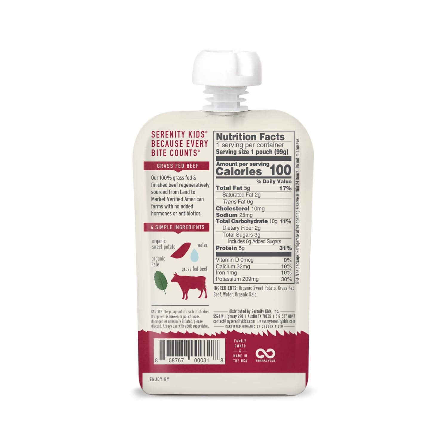 Hey There, Parents! Introducing The Serenity Kids 6+ Months Baby Food Pouches. These Little Wonders Are Packed With Deliciousness And Nutrition, Combining Sweet Potato Puree, And Beef Baby Food Into One Convenient Pouch. Perfect For Your Baby'S Journey Into New Flavors! What Makes These Beef Baby Pouches Special? They'Re Loaded With Nutrients Your Baby Needs, Like Healthy Fats And Proteins, Without Any Of Those Sugary Fruits. It'S All About Expanding Your Kiddo'S Palate With Savory Goodness While Staying True To The Essence Of Real Food. If You'Re Tired Of Figuring Out How To Introduce Meat To Your Baby, These Beef Baby Puree Pouches Make It Easy. With Beef Baby Food Pouch Options, You Can Trust That Your Baby Is Getting Ethically Sourced Ingredients That Mimic The Nutrition Of Breast Milk. Plus, It'S A Fun Way For Your Baby To Try New Tastes! These Puree Beef Pouches For Babies Are Also Eco-Friendly, From The Regenerative Agriculture Used To Source Ingredients To The Recyclable Packaging. Each Puree Baby Meat Pouch Comes In Bpa-Free Containers, And, Oh, There'S A Cool Recycling Program To Give Those Pouches A Second Life! For Safety, Remember To Refrigerate After Opening And Serve The Baby Beef Food Puree Out Within 24 Hours. No Need To Microwave-Just Massage The Pouch A Bit Before Serving For The Best Consistency. So, Go Ahead, And Let Your Little One Explore The World Of Beef Baby Food With Serenity Kids!
