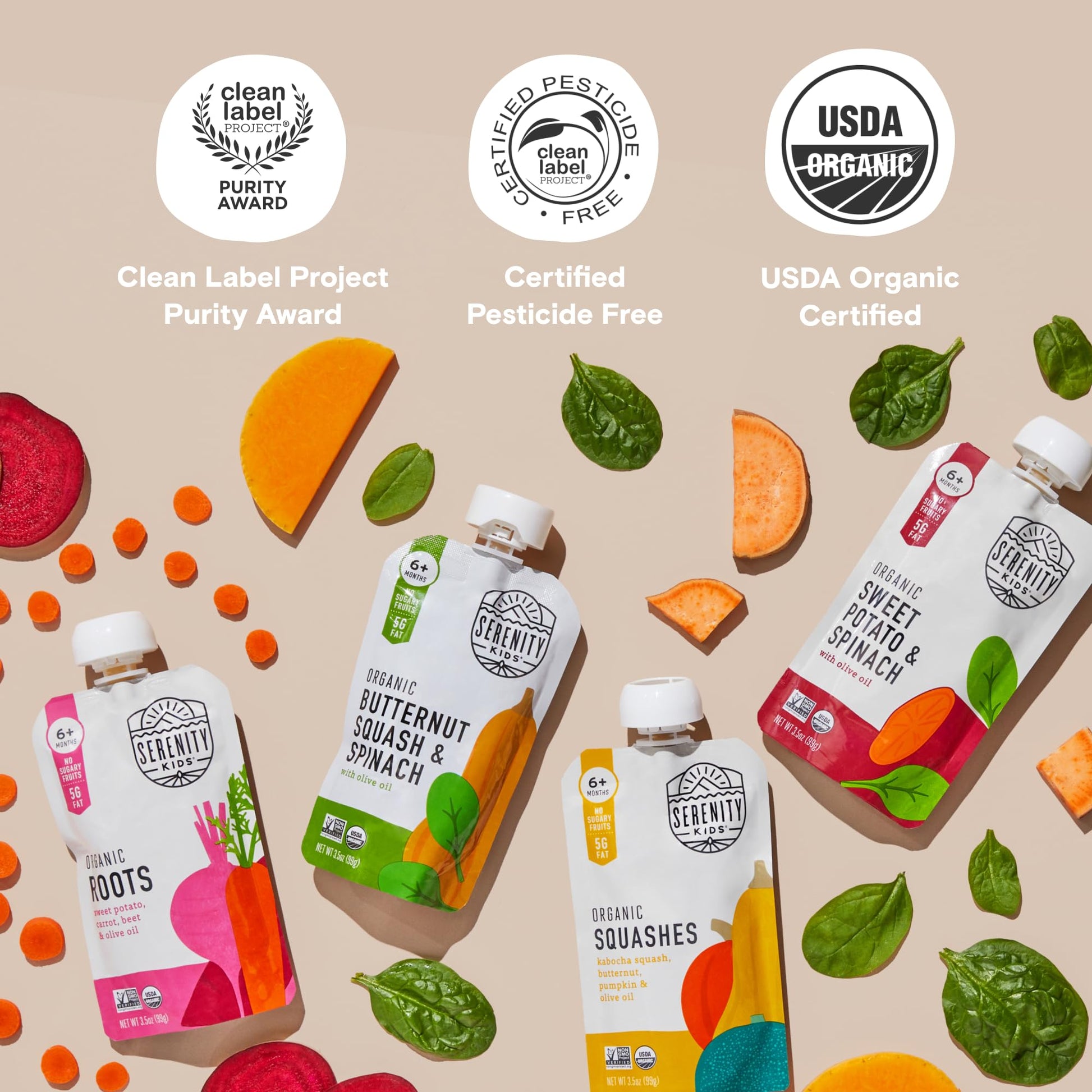 Serenity Kids 6+ Months Certified Organic Baby Food Pouches Veggie Puree Variety Pack 18 Count- No Sugary Fruits/Added Sugar - A