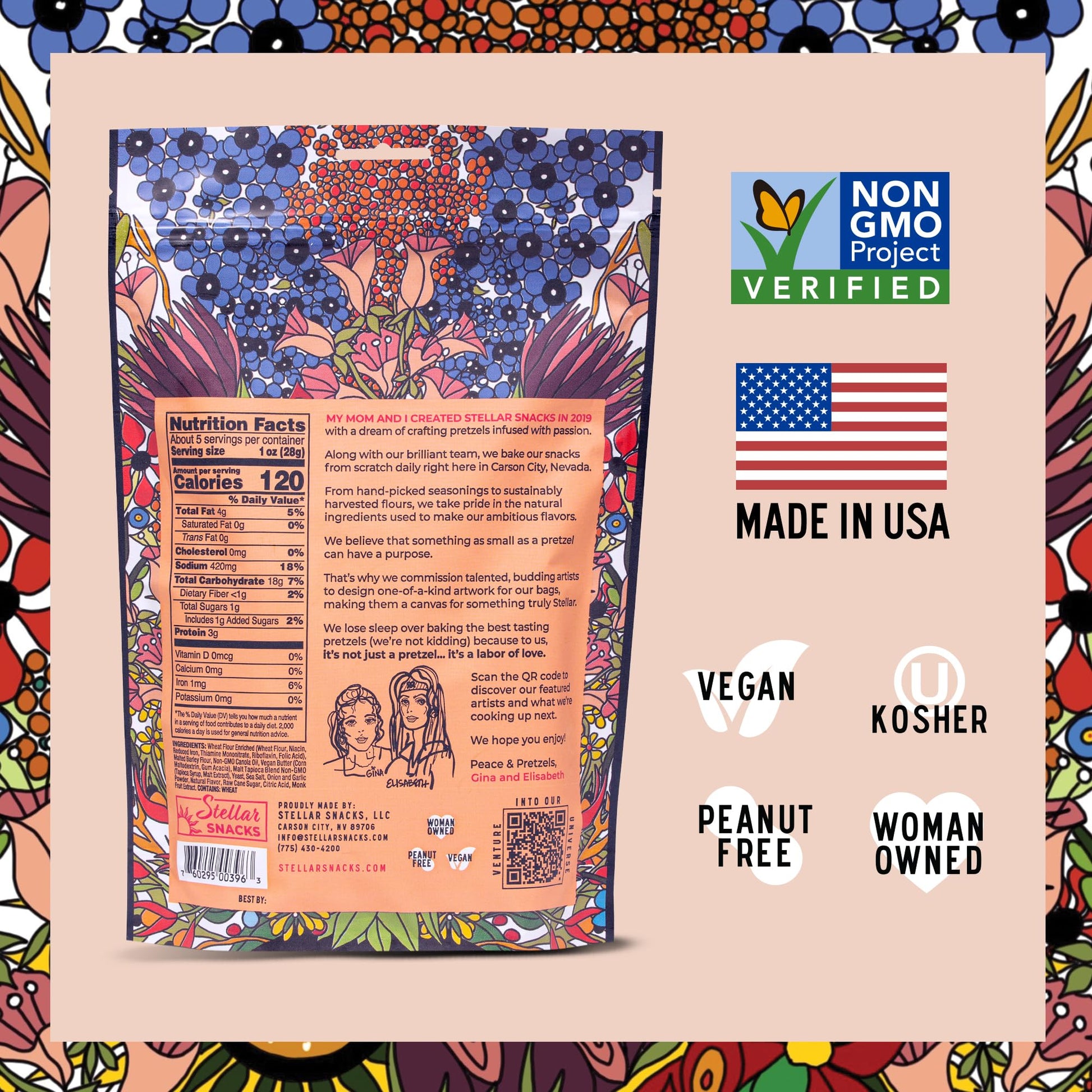 Here At Stellar Snacks, We Believe That Something As Small As A Pretzel Can Have A Purpose. As The Only Women-Owned, Family-Run Artisanal Pretzel Brand That Bakes In-House From Start To Finish, We Want To Elevate Your Snacking Experience. That'S Why We Take Pride In Every Step Of Our Process, From Hand-Picking Our Wholesome Ingredients To Baking Our Pretzels With Love And Care. We Don'T Believe In Shortcuts Or Artificial Ingredients. Instead, We Infuse Our Stellar Pretzel Braids With Naturally Rich Vegan Butter And Use The Highest Quality Wheat And Barley Flour - Consciously Grown And Milled Right Here In The U.S.A. Even Our Seasonings Are Made With Whole Foods Like Garlic, Onion And Monk Fruit, Because Nature Knows Best. But We'Re Not Just A Pretzel Brand - We'Re A Family Of Passionate Collaborators, Hard Workers And Snack Lovers. With A Team That Brings Over 200 Years Of Experience In The Pretzel-Making Business, We'Ve Created Ambitious Taste Profiles That Will Have You Coming Back For More. Our Family Culture Is A Reflection Of Our Passion For Crafting The Perfect Pretzel. We Approach Our Baking Process With The Same Level Of Attention And Detail That You Would Expect From True Gourmet Culinary Experts.