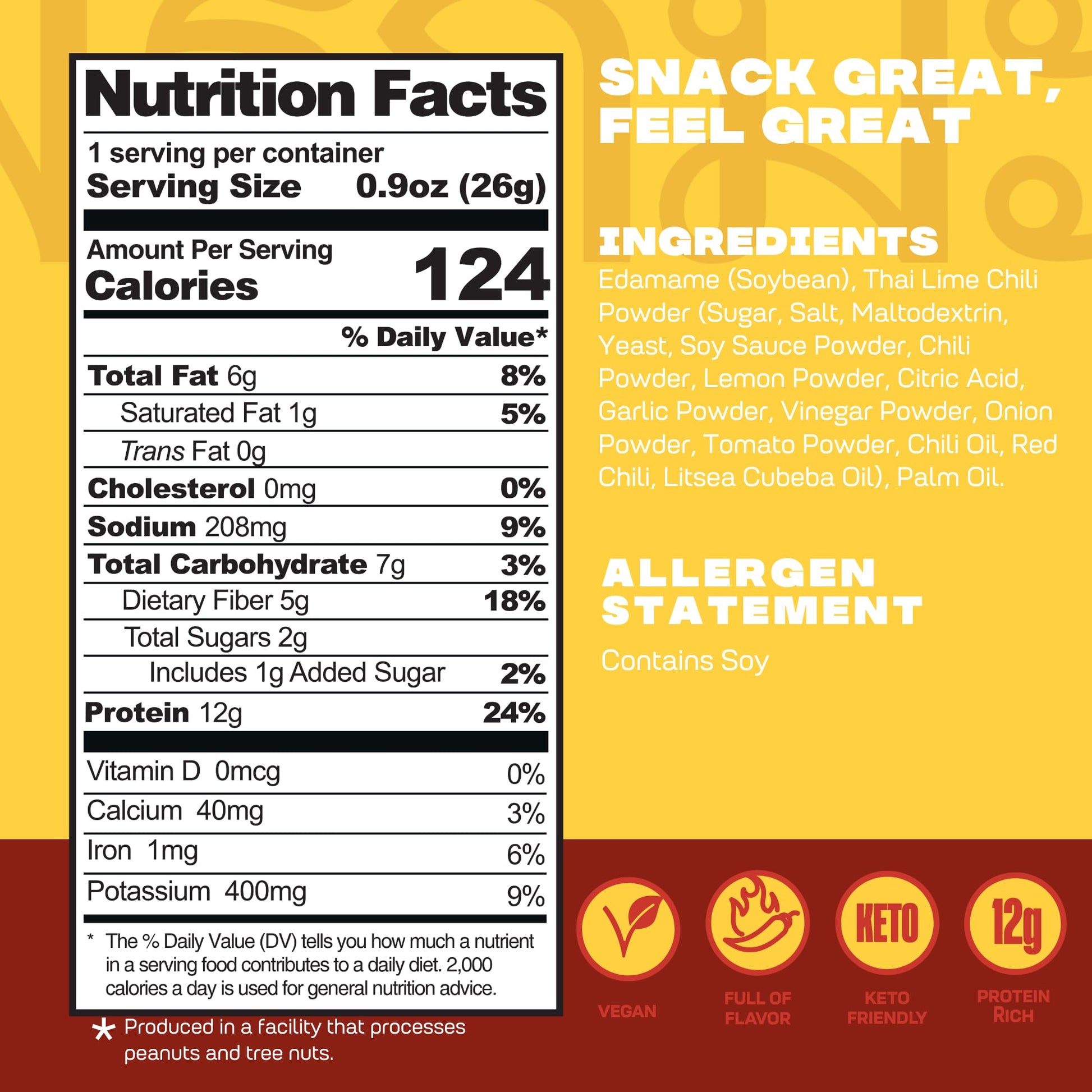 Where You Bean Edamame Beans Snack (Thai Lime Chili) - Crunchy and Dry Roasted Edamame Beans - High Protein Snacks, Keto and Veg