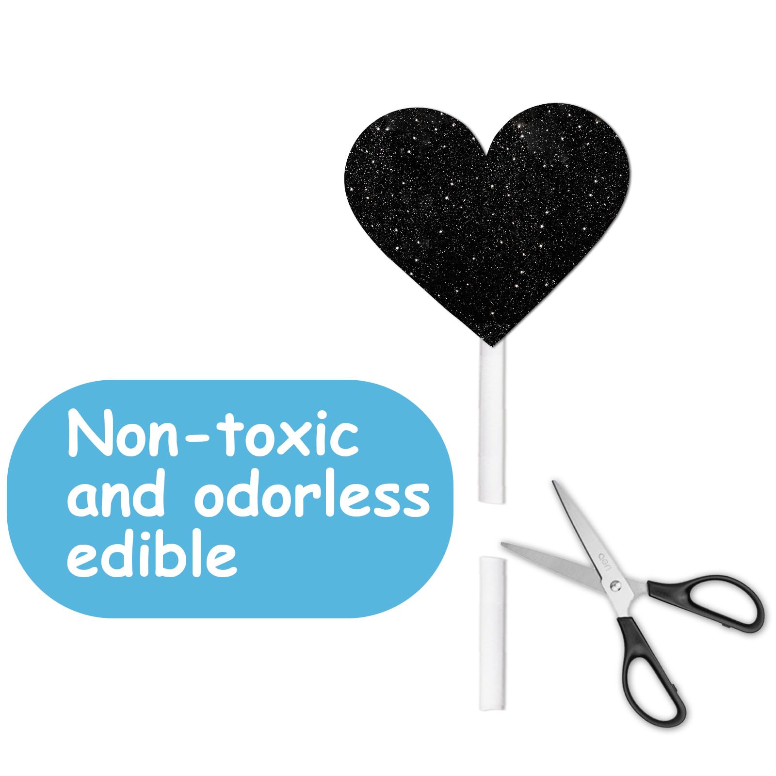 Q: What material are the cupcake toppers made from?A: The cupcake toppers are crafted from sturdy card-stock material with a high-ranking glitter powder finish, ensuring a sparkling and attractive presentation.