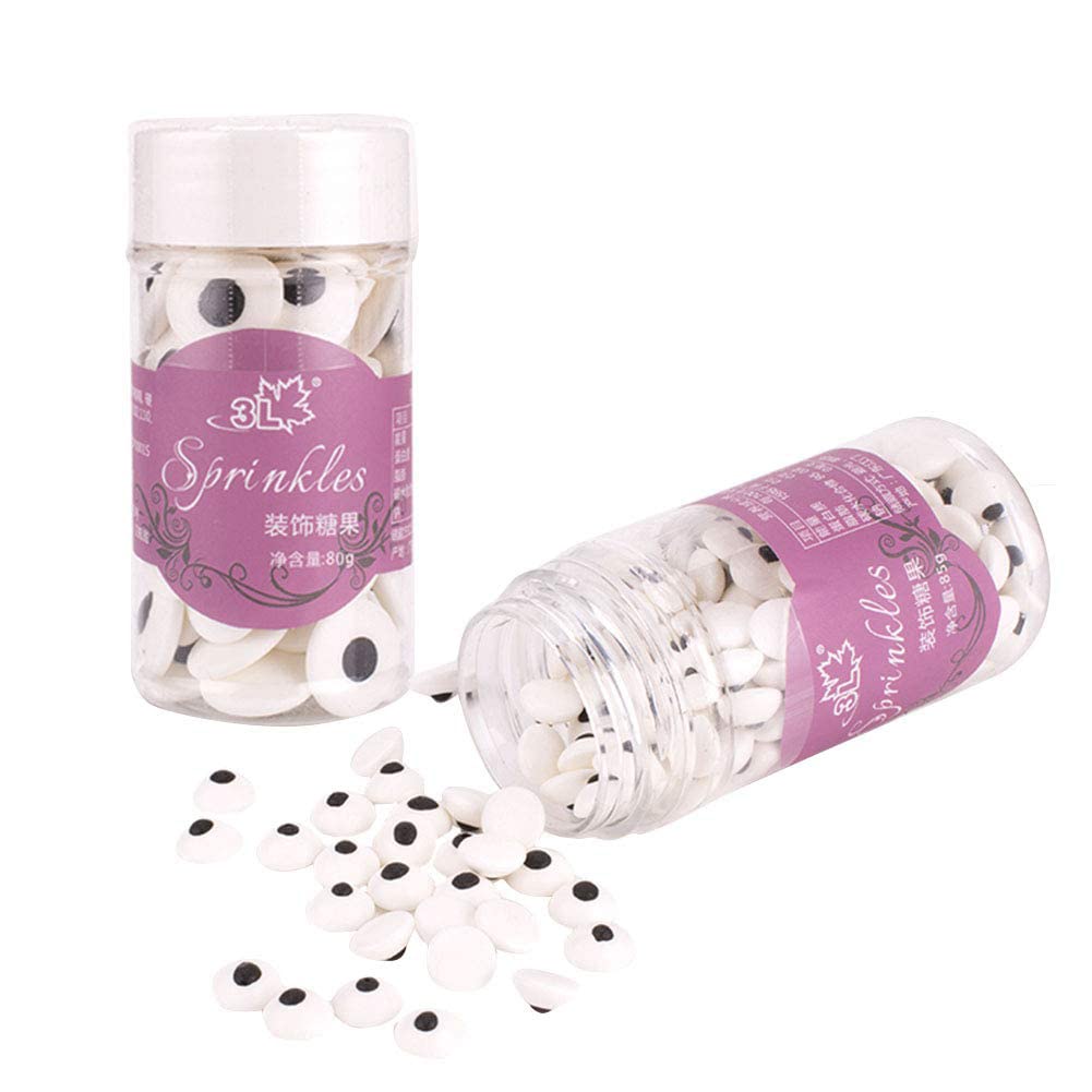 2 Bottles Candy Eyeballs Eyes Cake Cupcake Toppers Cookie Decorations,Two Size Mixed,Sweet Personalities Edible Candy For HALLOW