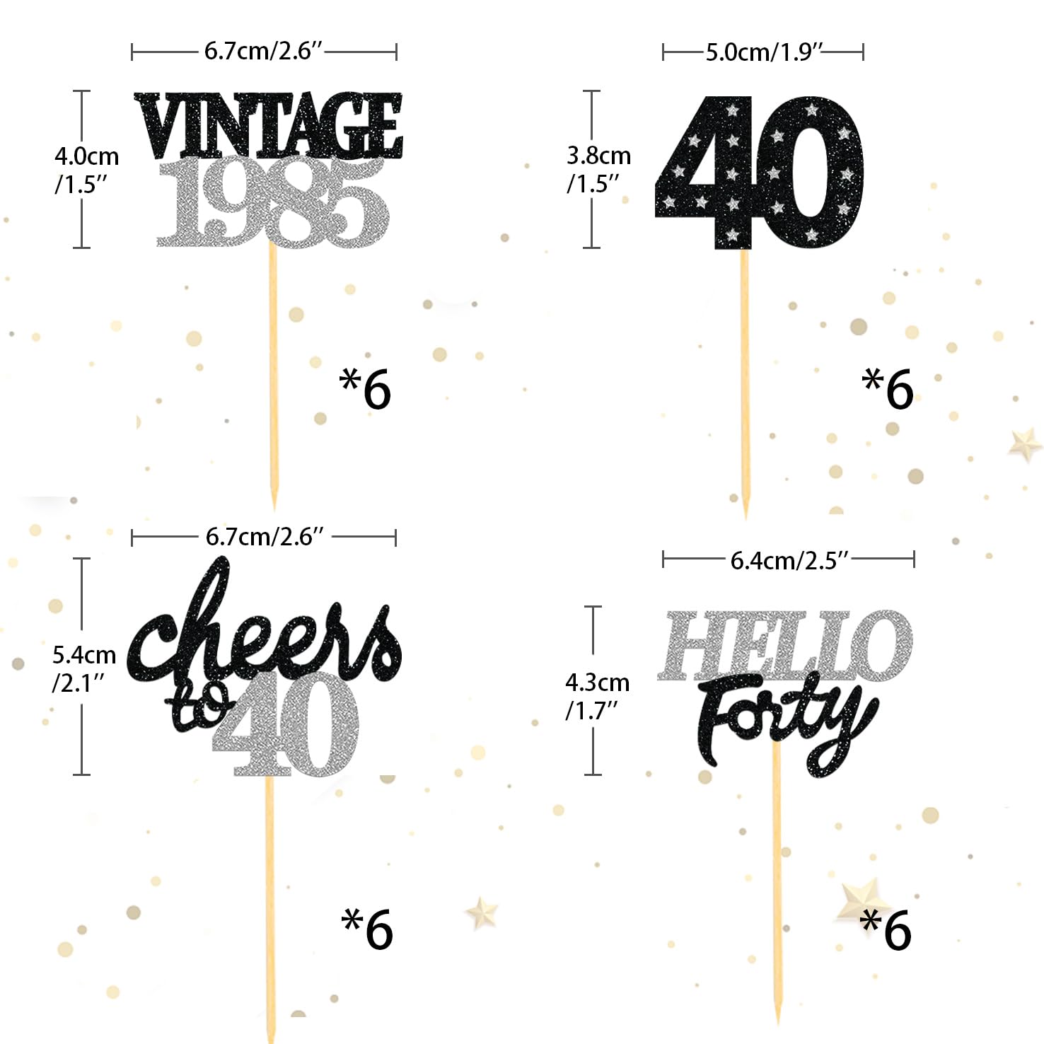 Q: Can these toppers be used for occasions other than a 40th birthday party?A: Absolutely! These cupcake toppers are versatile and can be used for various celebrations, including weddings, anniversaries, and other themed parties.