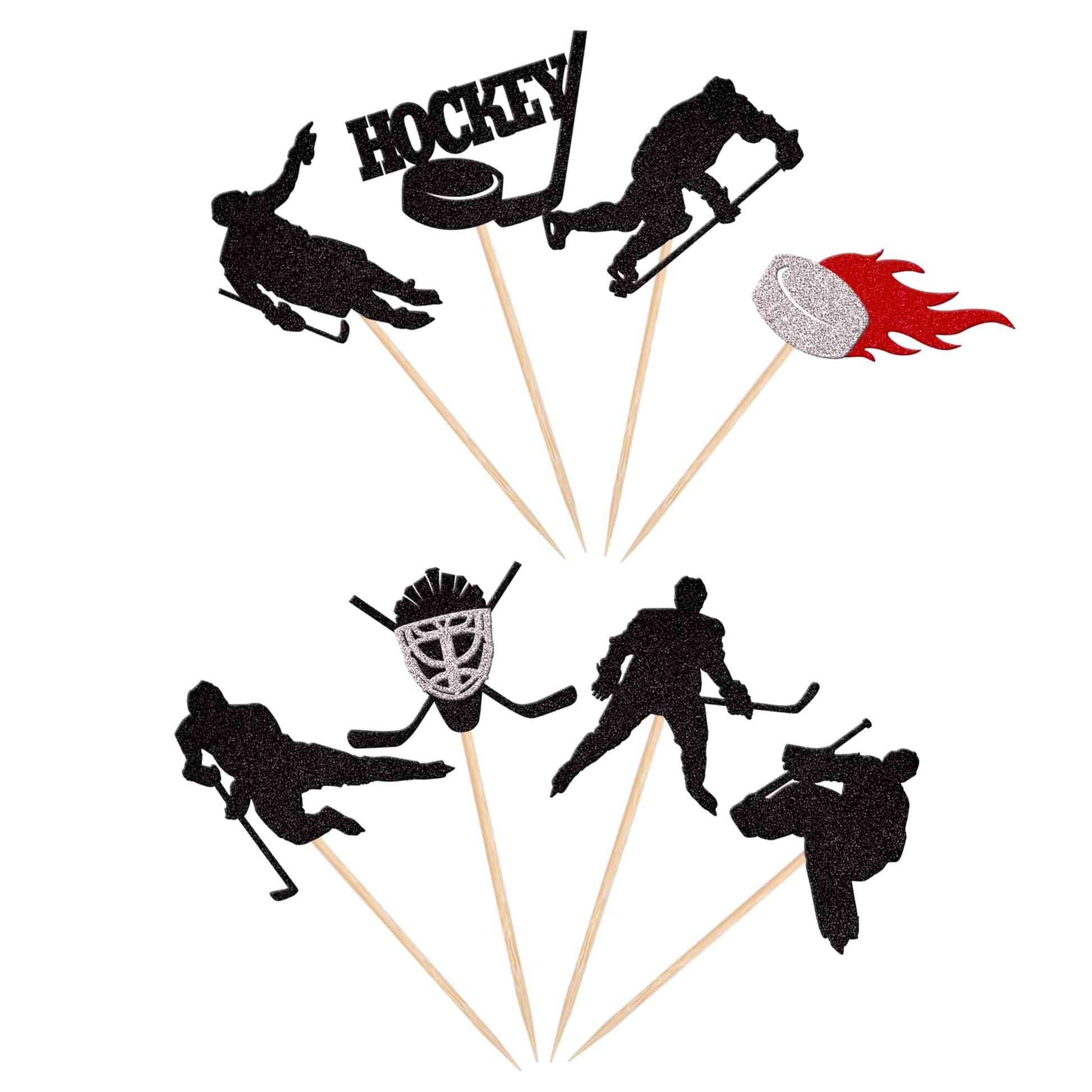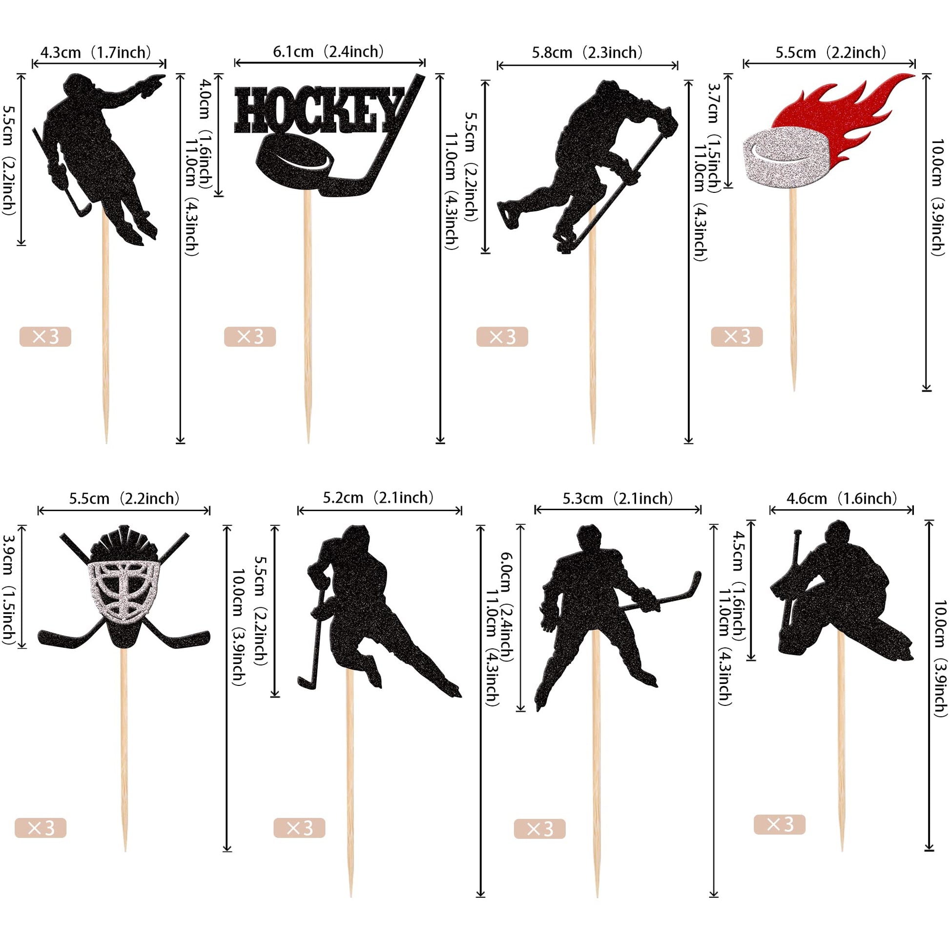 Ice Hpckey Cupcake Toppers For Hockey Players Sports Theme Baby Shower Kids Birthday Party Cake Decorations Supplies Perfect For Ice Hockey Sports Theme Party,Hockey Players Theme Party,Baby Shower Party, Kids Boys Girls Birthday Party Cupcake Decorations Supplies. Pack Of 24 Pcs, 3 Pcs Of Each Design. The Size Is 1.7 *4.3 Inch / 2.4*4.3 Inch / 2.3*4.3 Inch / 2.2*3.9 Inch / 2.2*3.9 Inch / 2.1*4.3 Inch / 2.1*4.3 Inch / 1.6*3.9 Inch ( With Stick ) Made Of High Quality Paper Card Stock And Food Grade Sticks,Thick And Sturdy. These Cupcake Toppers Are One Side Glitter, Another Side Is White, And They Are Intended For Decoration Only, Please Do Not Put Them In Oven Or Microwave. If The Item You Received Has Any Defects, Please Contact Us For Refund.We Will Deal With It Within 24 Hours.