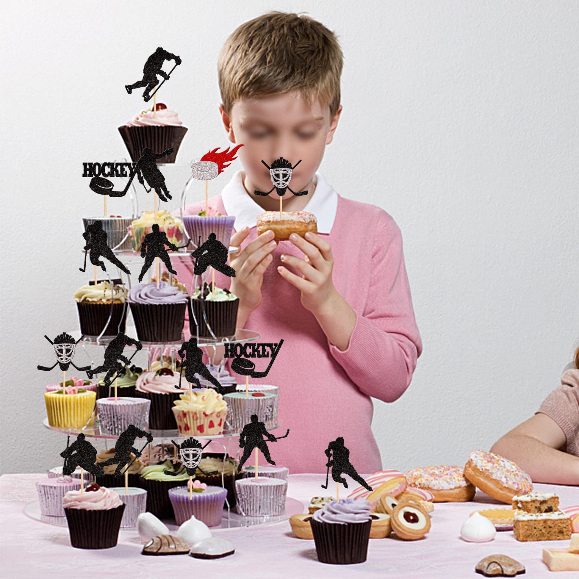 Q: What occasions are these hockey cupcake toppers suitable for?A: These ice hockey-themed cupcake toppers are perfect for various occasions, including sports-themed parties, baby showers, kids' birthday parties, and any event celebrating hockey enthusiasts.