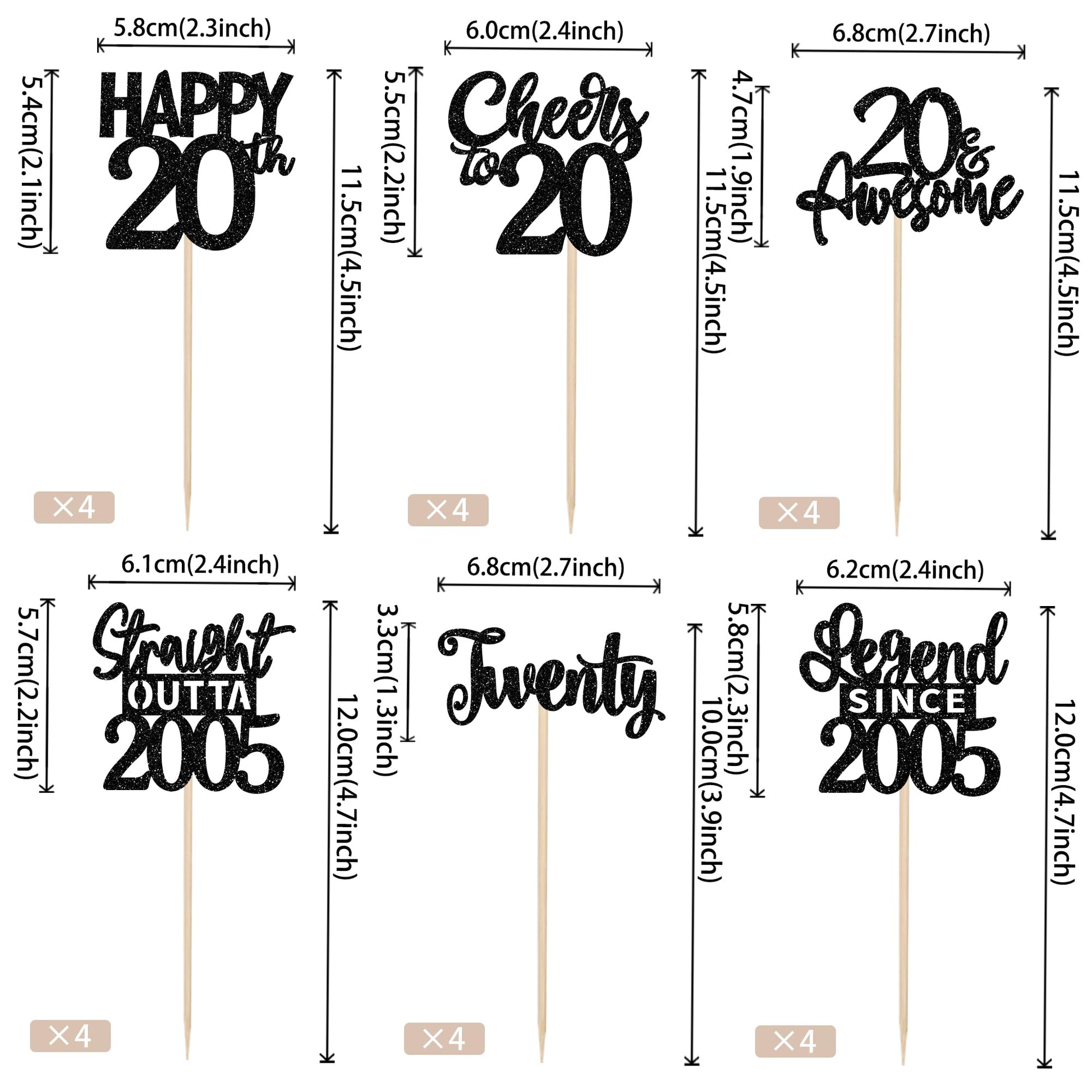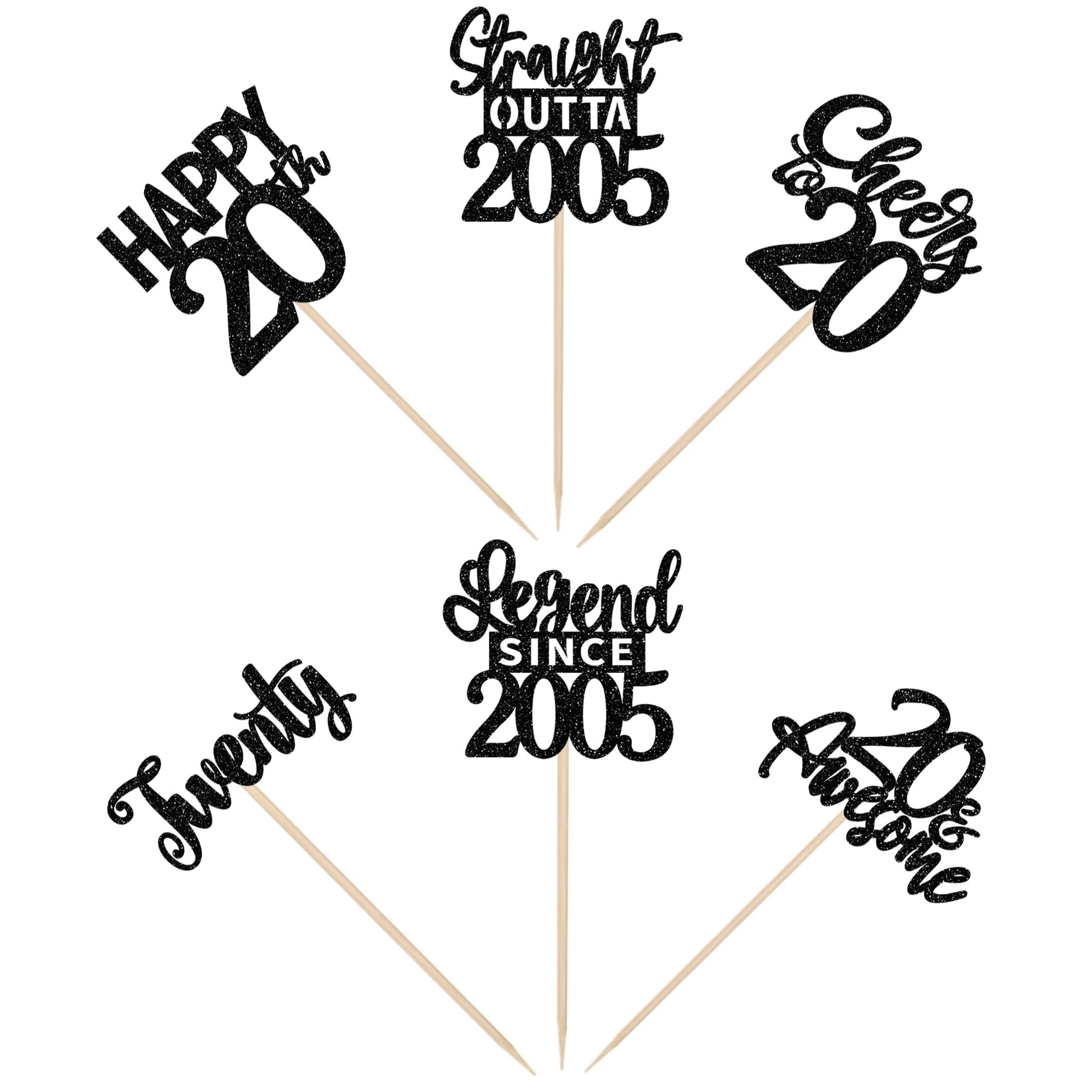 24Pcs Happy 20Th Birthday Cupcake Toppers Twenty Straight Outta 2005 Cupcake Picks Cheers To 20 Birthday Decorations Lengend Since 2005 Cupcake Decorations For 20Th Birthday Anniversary Party Cake Decorations Supplies Perfect For Legend Since 2005 Theme Party, 20Th Anniversary Theme Party,Cheers To 20 Years Theme Party, 20 Awesome Theme Party Cupcake Decorations Supplies. Pack Of 24 Pcs,4 Pcs Of Each Design. The Size Is 2.3*4.5/ 2.4*4.5/ 2.7*4.5/ 2.4*4.7/ 2.7*3.9/ 2.4*4.7 Inch ( With Stick ) Made Of High Quality Paper Card Stock,Thick And Sturdy. These Straight Outta 2005 Cupcake Toppers Are One Side Glitter, Another Side Is White, And They Are Intended For Decoration Only, Please Do Not Put Them In Oven Or Microwave. If The Item You Received Has Any Defects, Please Contact Us Immediately.We Will Deal With It Within 24 Hours.