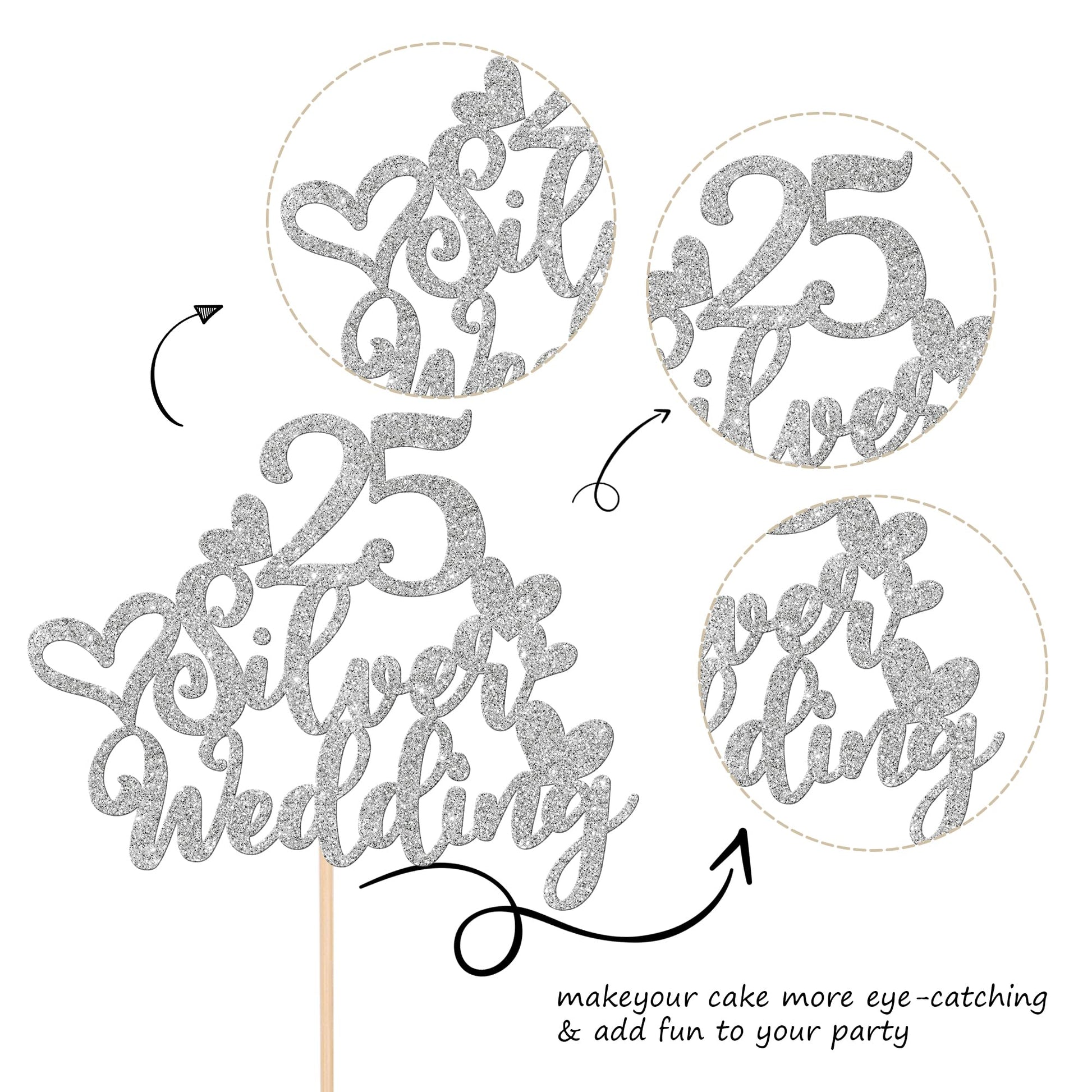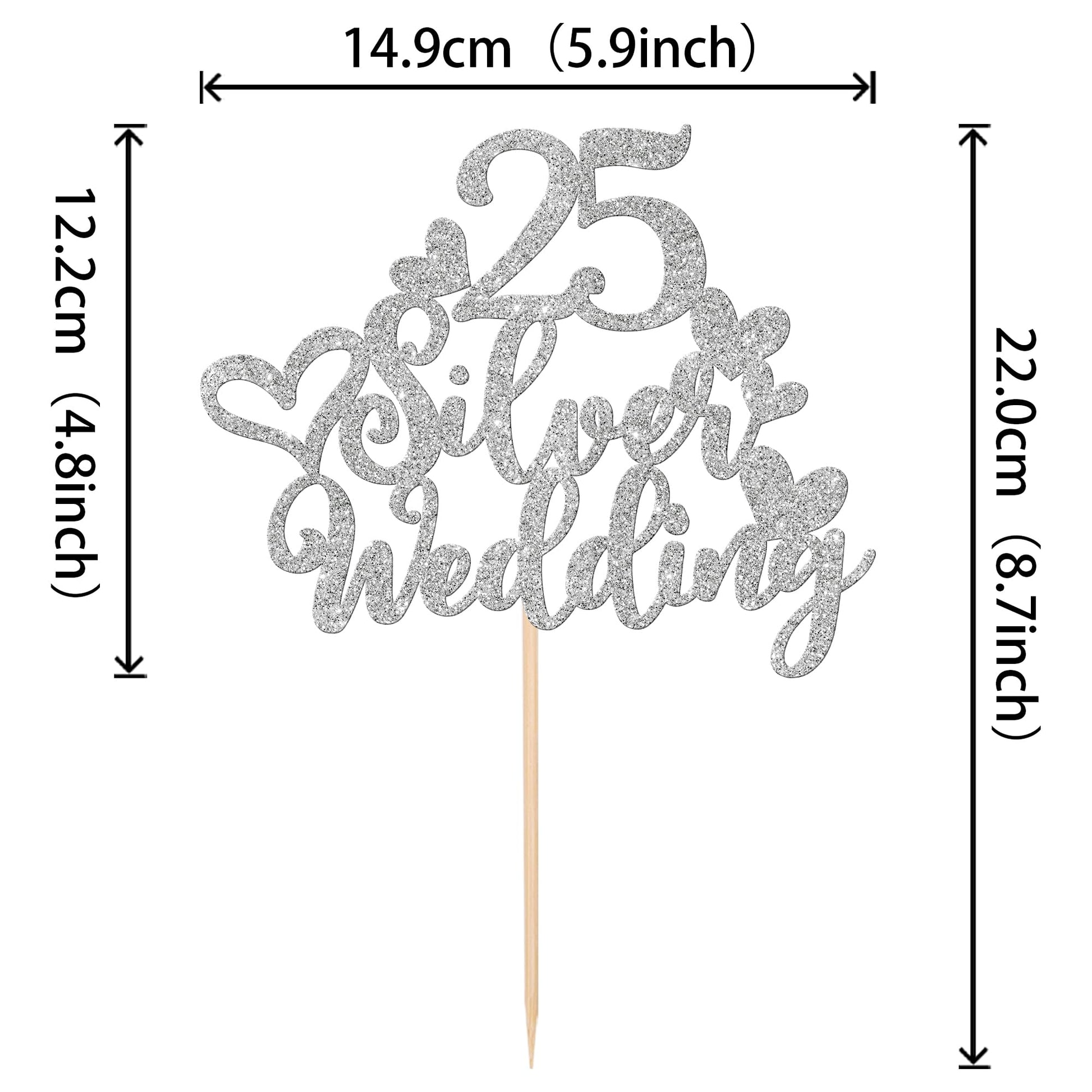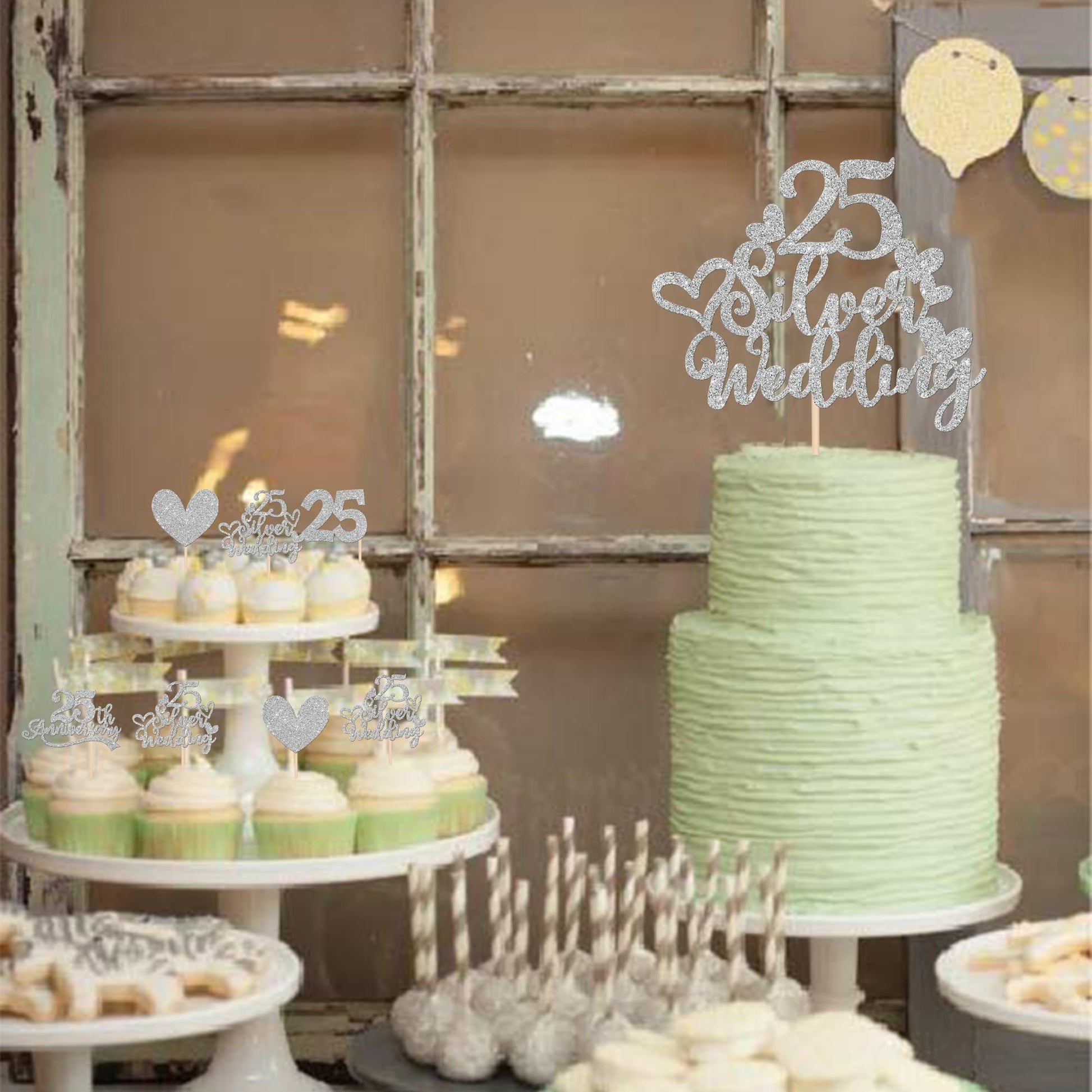 25 Silver Wedding Anniversary Cake And Cupcake Toppers For Happy 25Th Wedding Anniversary Party Cake Decorations Supplies. Perfect For 25Th Silver Wedding Theme Party, Happy 25Th Wedding Anniversary Theme Party, 25 Years Blessed & Loved Theme Party, Cheers To 25 Years Anniversary Theme Party Cake Decorations Supplies. Pack Of 25 Pcs, 1 Pcs Cake Topper + 24 Pcs Cupcake Toppers. The Size Of Cake Topper Is 5.9*8.7 Inch , The Size Of Cupcake Toppers Is 1.8*4.6 Inch / 1.8*4.6 Inch / 2.7*4.6 Inch / 2.3*4.6 Inch ( With Stick ) Made Of High Quality Paper Card Stock And Food Grade Sticks,Thick And Sturdy. This Cake Topper Is One Side Glitter, Another Side Is White, And This Is Intended For Decoration Only, Please Do Not Put Them In Oven Or Microwave. If The Item You Received Has Any Defects, Please Contact Us For Refund.We Will Deal With It Within 24 Hours.