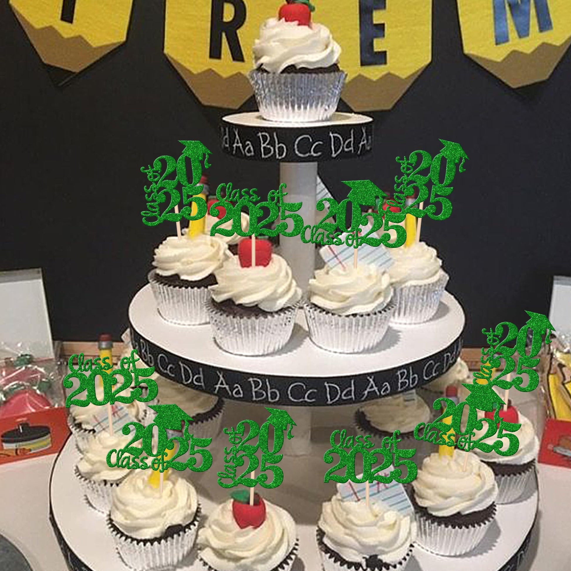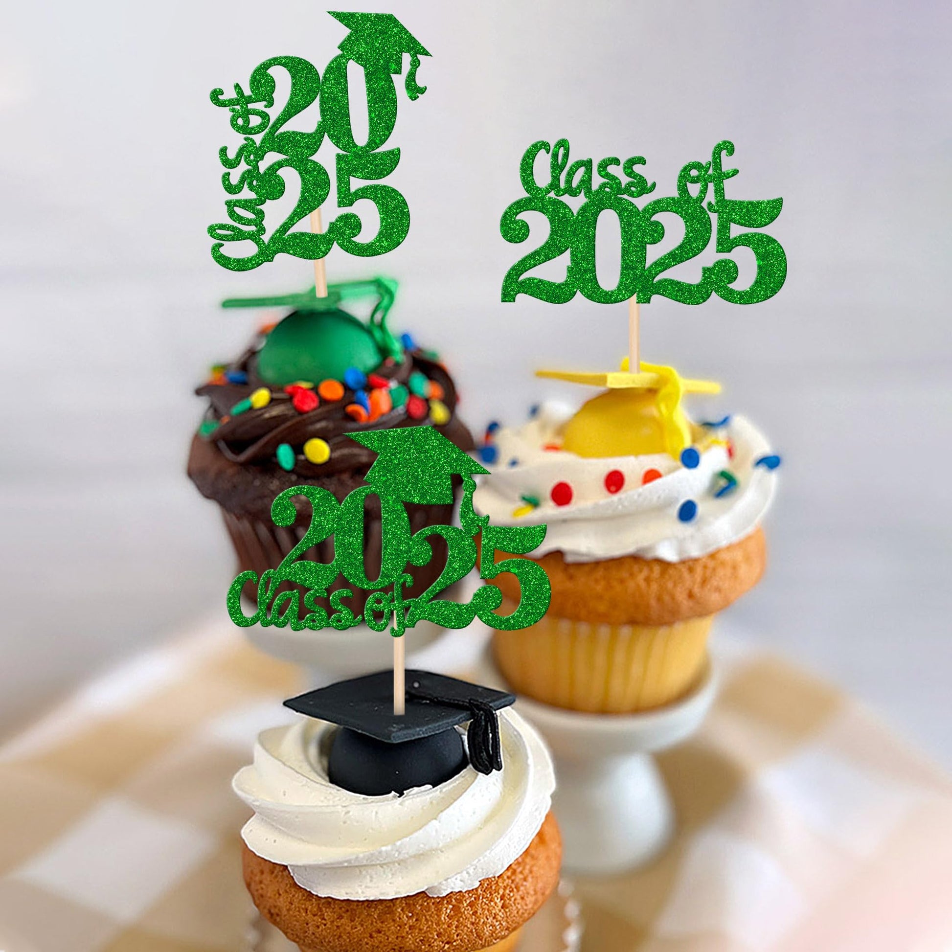 Q: Can these toppers be used for other desserts besides cupcakes?A: Absolutely! These graduation-themed cupcake toppers can also be used for ice cream, fruits, cookies, and other desserts to enhance your party decor.