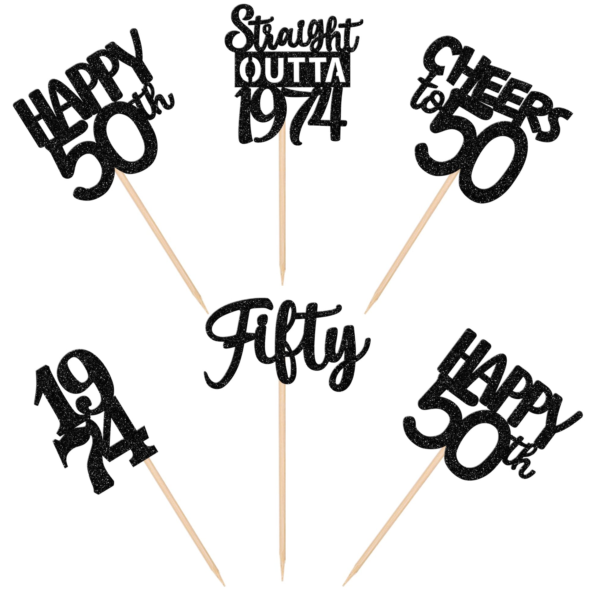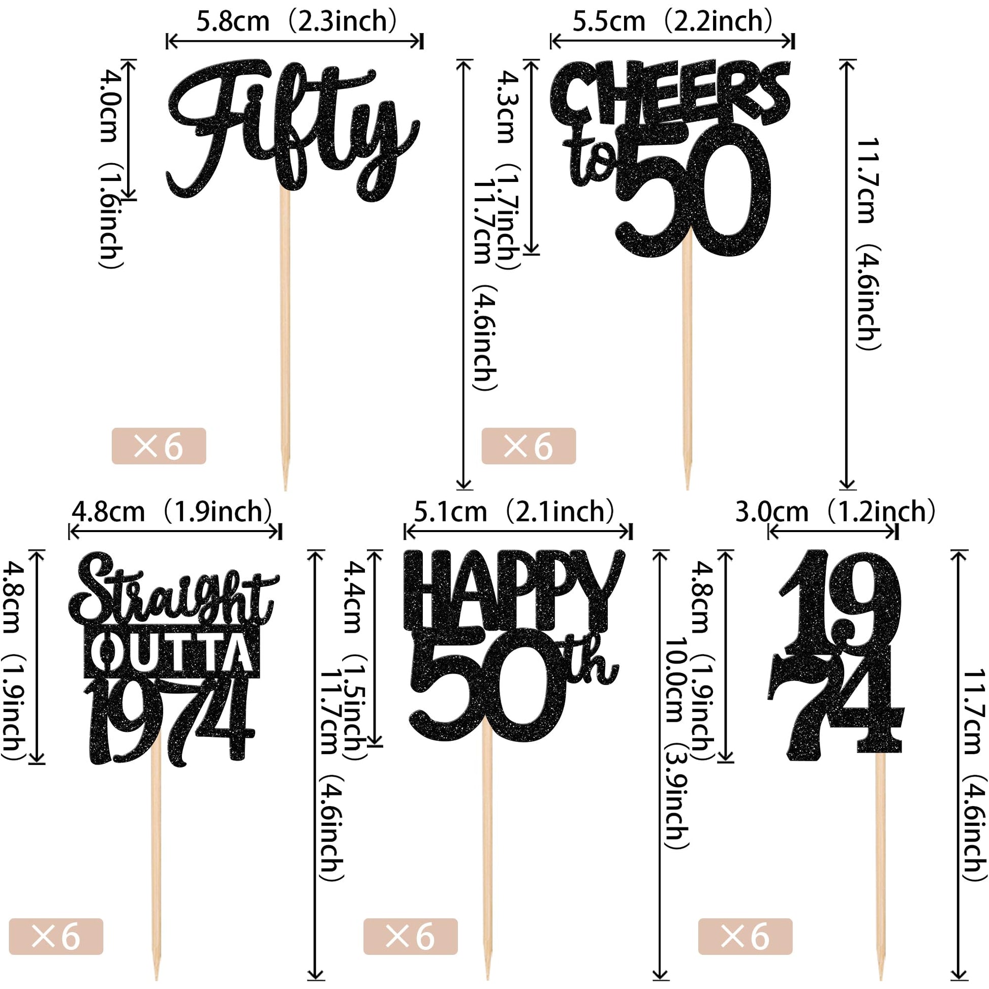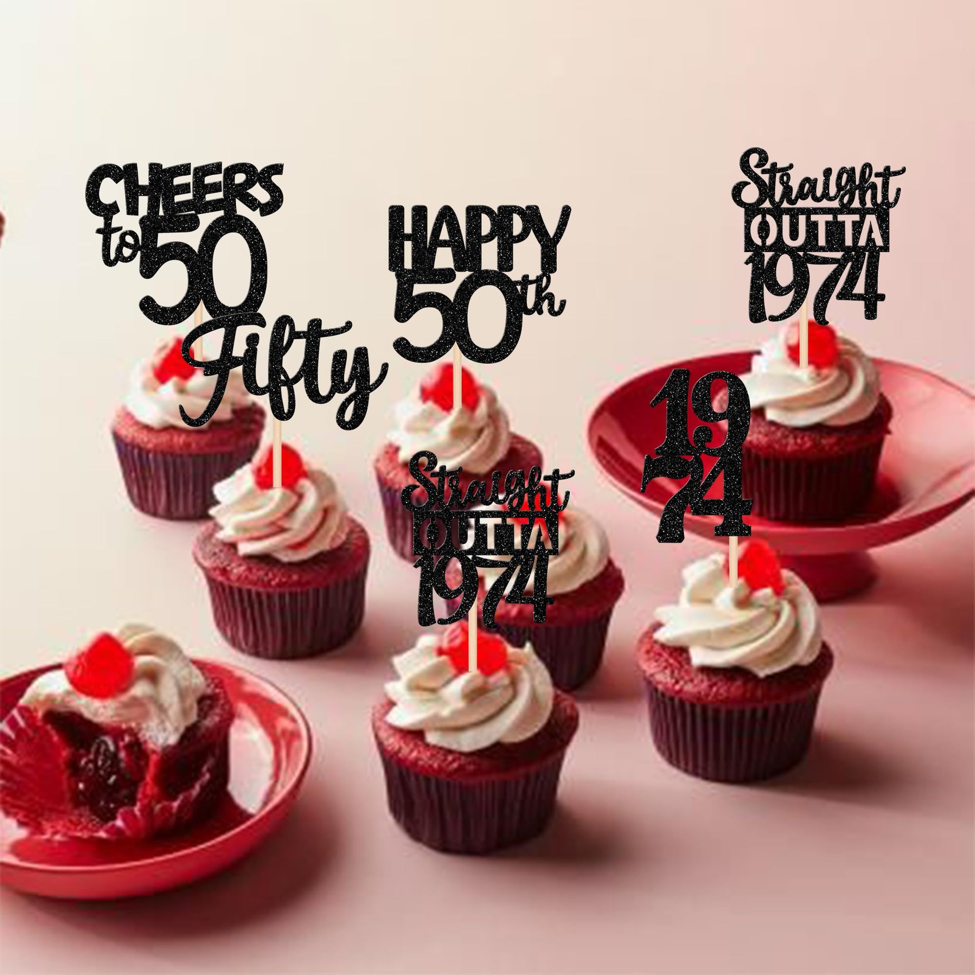 Straight Outta 1974 Cupcake Toppers For Happy 50Th Birthday Anniversary Party Cake Decorations Supplies Perfect For Happy 50Th Bithday Theme Party,Straight Outta 1974 Theme Party,50Th Wedding Anniversary Theme Party,Cheers To 50 Years Theme Party Cupcake Decorations Supplies. Pack Of 30 Pcs,6 Pcs Of Each Design The Size Is 1.9*4.6 Inch / 1.3*3.9 Inch / 2.1*4.6 Inch / 2.3*3.9 Inch / 2.2*4.5 Inch ( With Stick ) Made Of High Quality Paper Card Stock And Food Grade Sticks,Thick And Thick And Sturdy. These Cupcake Toppers Are Single Glitter, The Back Is White, And They Are Intended For Decoration Only, Please Do Not Put Them In Oven Or Microwave. If The Item You Received Has Any Defects, Please Contact Us For Refund.We Will Deal With It Within 24 Hours.