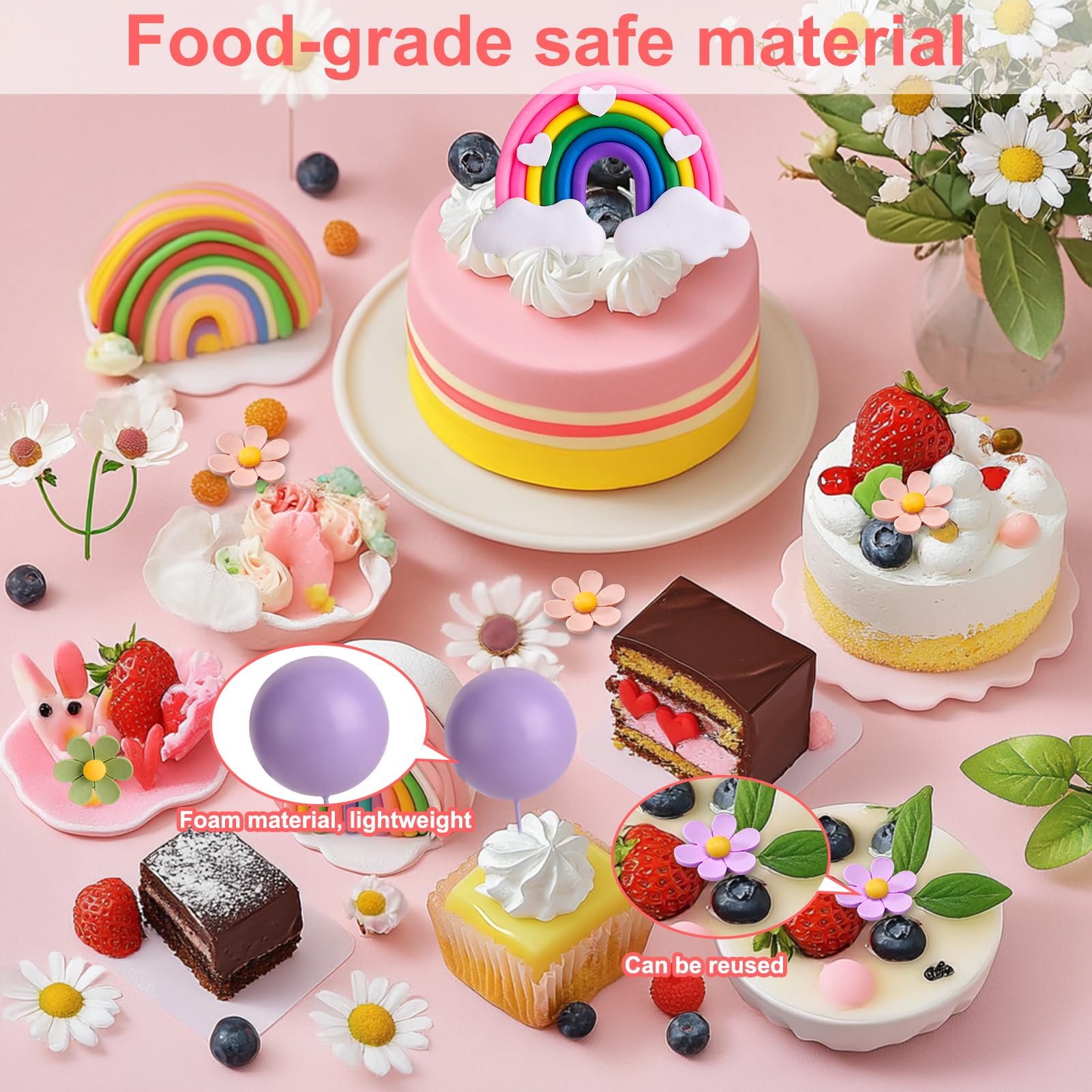 - Q: Are the materials used in the daisy cake toppers safe for decoration? A: Yes, the daisy cake topper set is made from high-quality, non-toxic materials. The pastel balls are crafted from lightweight foam, while the daisy flowers and rainbow topper are made of sturdy polymer clay. The transparent cake topper is made from premium acrylic, ensuring both safety and durability for decorative purposes.