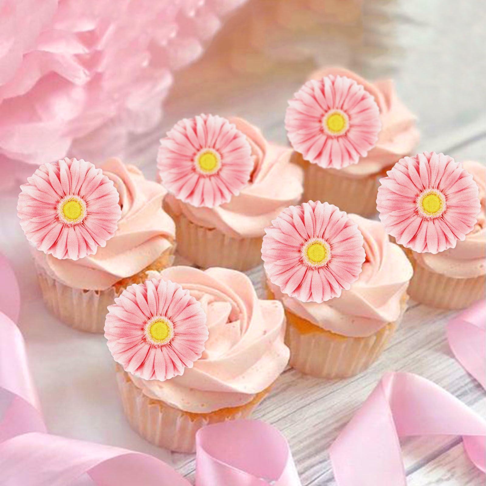 Q: What are the materials used in the 40 Pack Edible Daisy Cupcake Toppers?A: The 40 Pack Edible Daisy Cupcake Toppers are made of high-quality edible wafer paper, which is non-toxic and safe for food use. They are lightweight and portable, making them easy to place on your cakes.