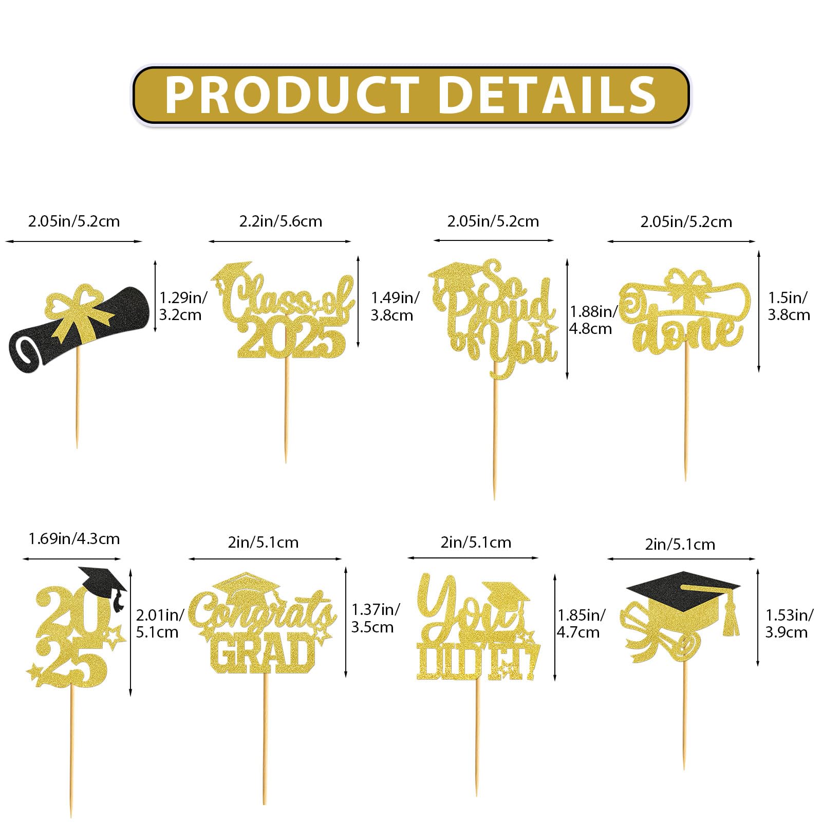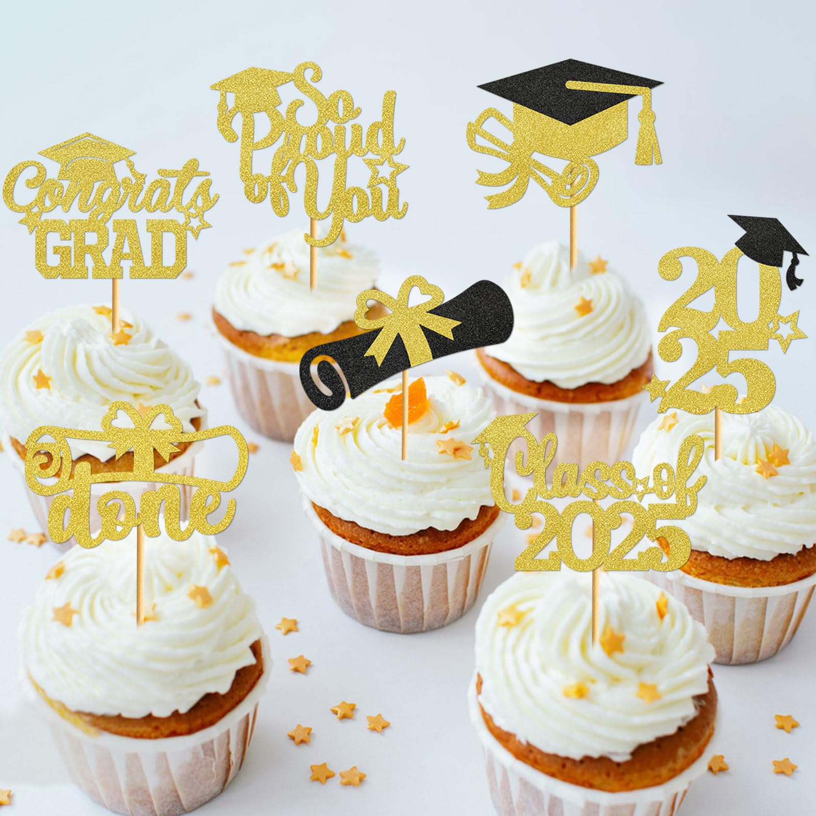 Package Included: 40Pcs Glitter Graduation Cupcake Toppers 2025 Include 8 Styles, Each Has 5Pcs. The Graduation Picks For Cupcakes Are Very Nice.