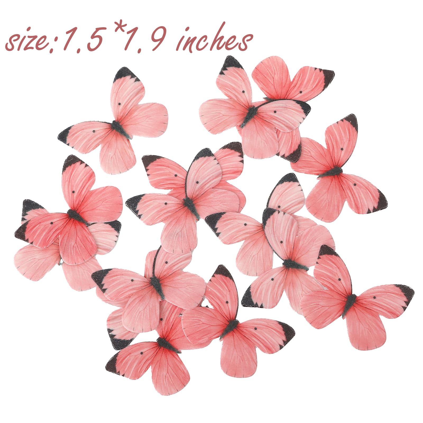 Q: How big are the butterfly cake toppers?A: Each butterfly has a wing span of approximately 1.9 inches, making them perfect for decorating cakes and cupcakes.