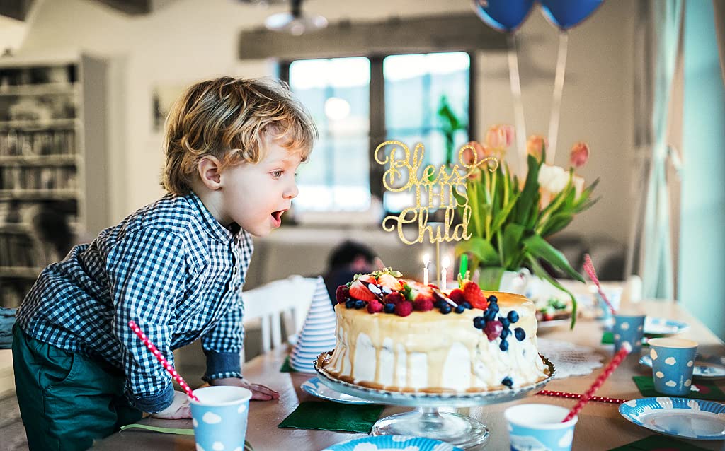 Q: What occasions is the AHAORAY Bless This Child Cake Topper suitable for?A: This cake topper is perfect for a range of celebrations, including children's birthday parties, baby showers, first holy communions, and christenings, making it a versatile decoration for many special events.