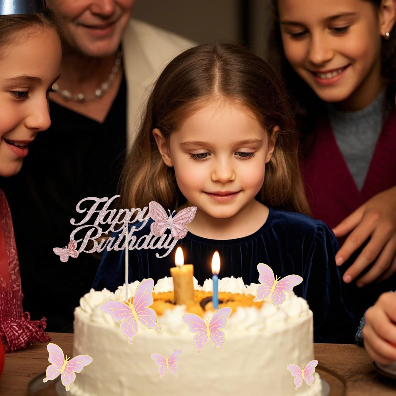 If you like to make a cake for a sweet girls or womans birthday party, this glitter rose gold happy birthday cake topper with 3d hand made butterflies, and 16 piece pink butterfly little toppers will be a good choiceIts shining and beautiful, which will make your cake look more delicious and eye-catchingThey will be a big hit