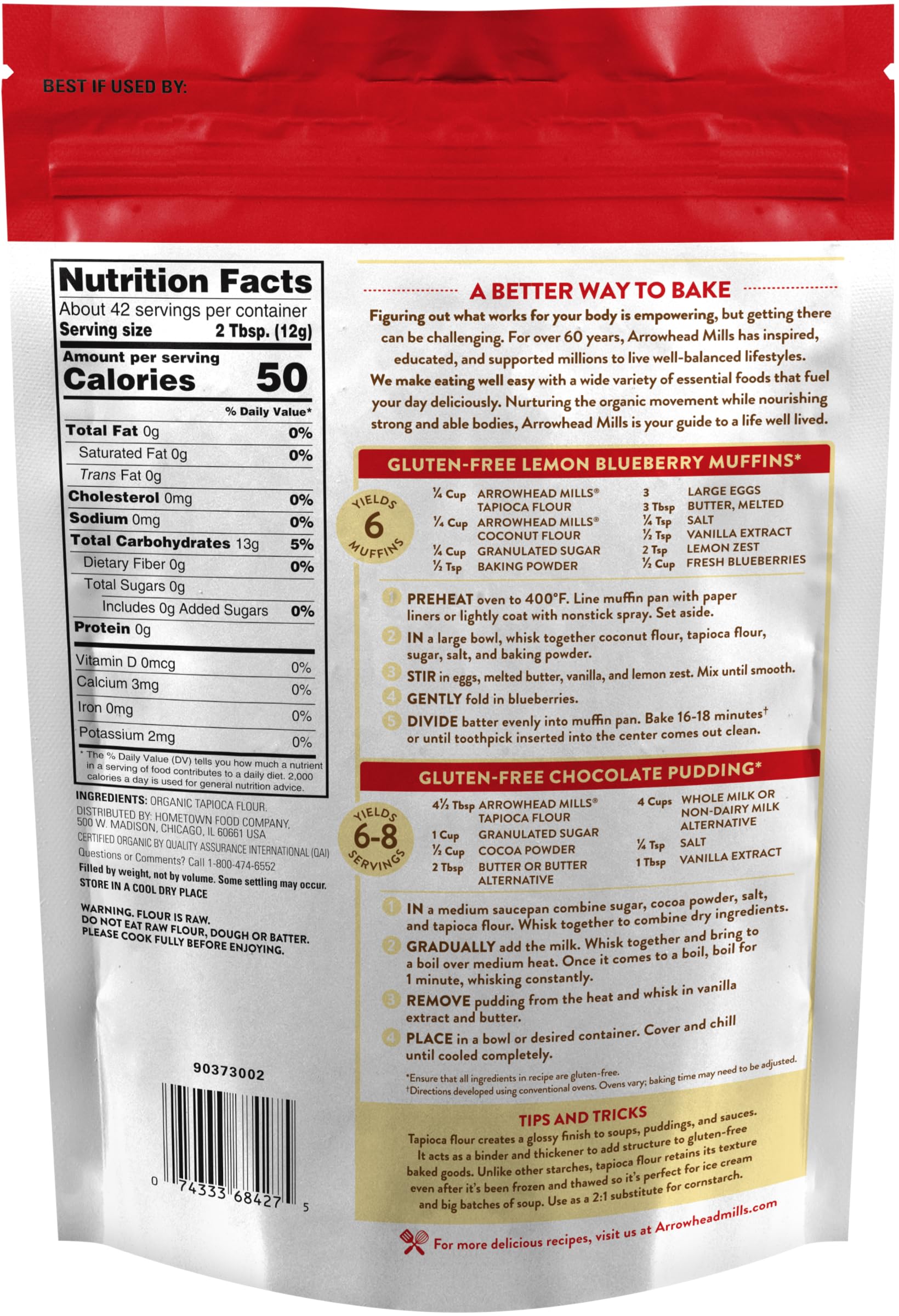 - Q: Is Arrowhead Mills Tapioca Flour Non-GMO? A: Yes, Arrowhead Mills Organic Gluten Free Tapioca Flour is labeled as Non-GMO. It is made from organic ingredients that do not contain genetically modified organisms, ensuring a natural choice for your baking needs.