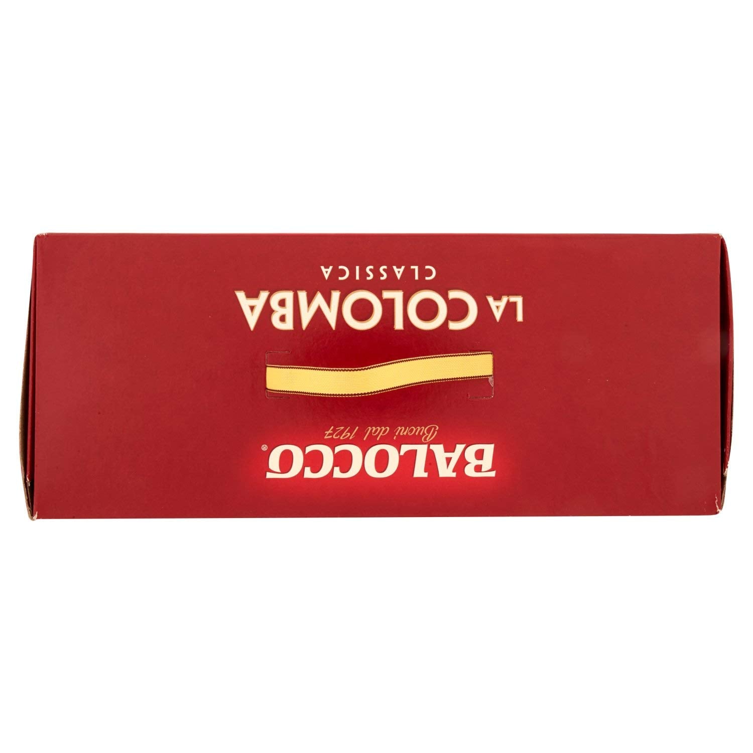 - Q: What are the key ingredients in Balocco Colomba Classica Easter Cake? A: The Balocco Colomba Classica Easter Cake is made with wheat flour, candied orange peels (16.2%), icing (10%), butter, sugar, fresh egg yolk, natural yeast, almonds, and more. It is free from genetically modified ingredients.
