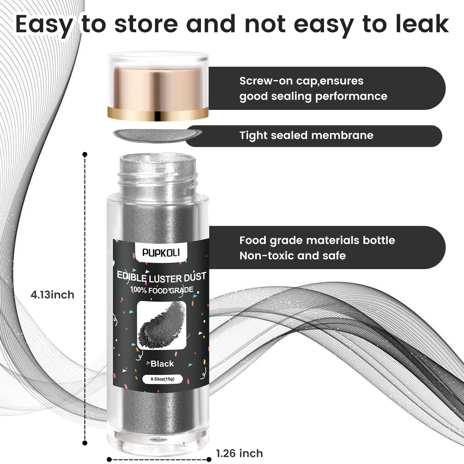 Q: What is the shelf life of the Black Luster Dust once opened?A: The Black Luster Dust has a long shelf life when stored in a cool, dry place. Ensure the jar is tightly sealed to maintain its quality and prevent moisture from affecting the product.