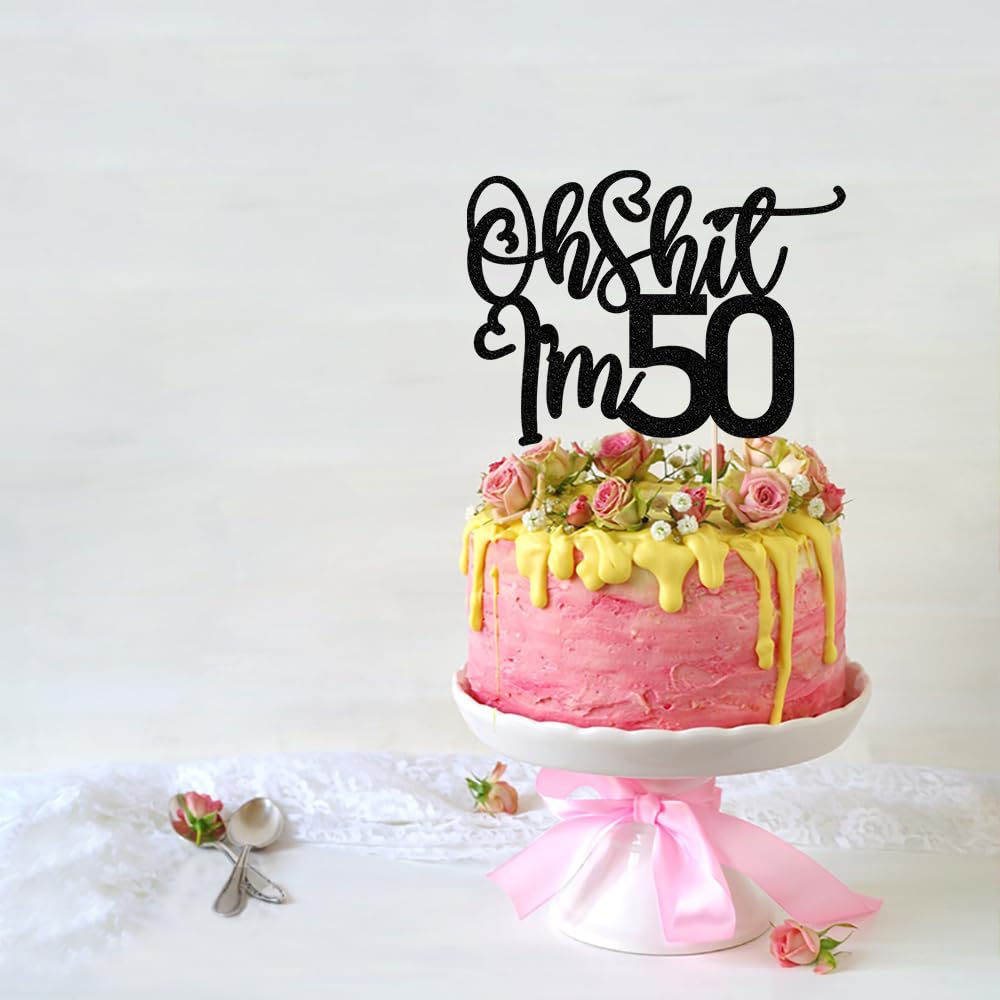 Q: How can I make my dessert look more appealing with this cake topper?A: The eye-catching design of the Black flash Oh Shit I'm 50 Cake Topper enhances the visual appeal of your cake, making it look more delicious and impressive for your birthday party.