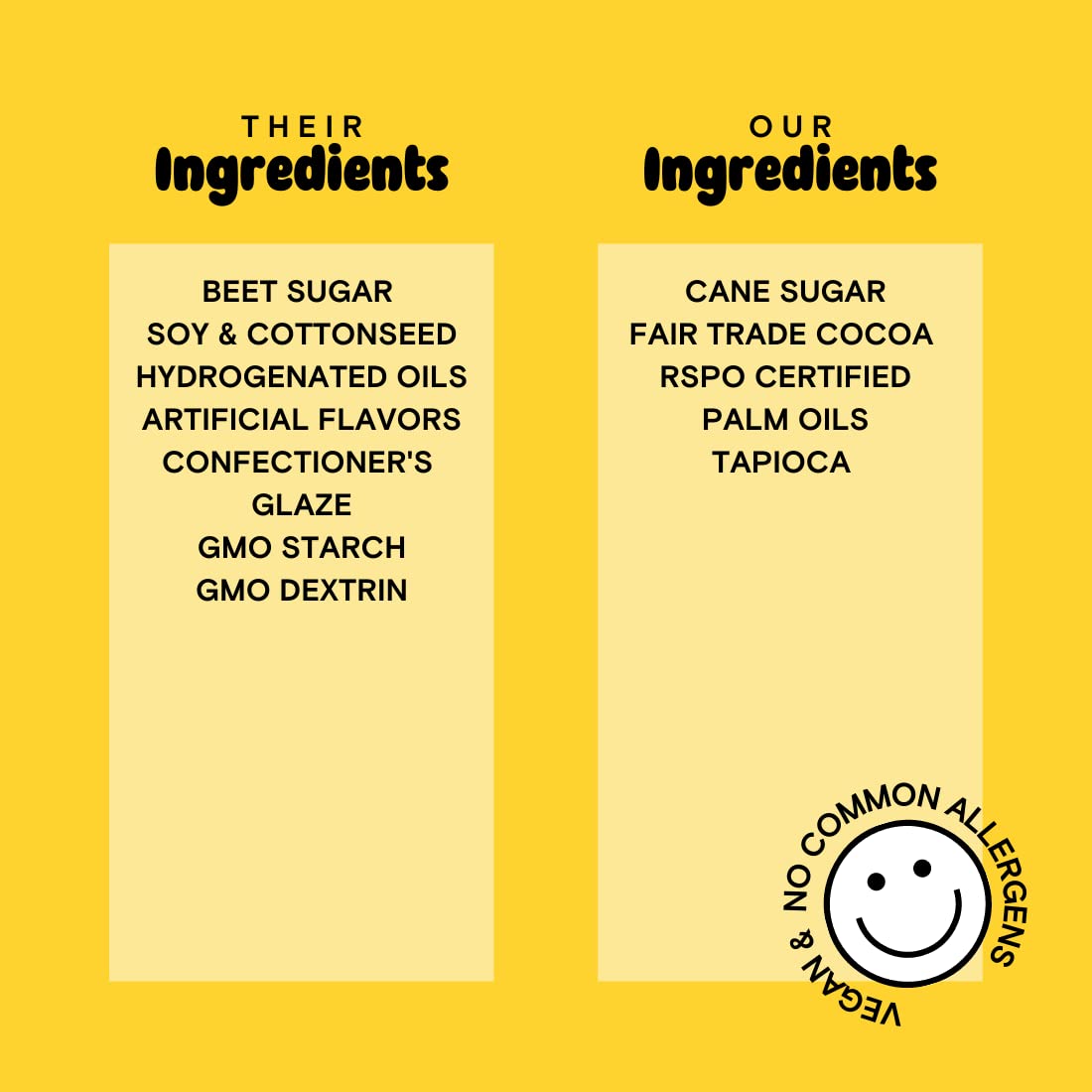 Richer, fudgier, friendlier. We gave chocolate sprinkles a glow up with fair trade cocoa, American manufacturing, and the highest quality ingredients, like tapioca instead of corn, non-gmo cane sugar, and Certified RSPO palm oils. You’ll love the super fudgy taste of these sprinkles, which vibes more like a brownie than ye olde traditional chocolate sprinkles (which are often loaded with natural and artificial flavors, hiding the true character of cocoa).