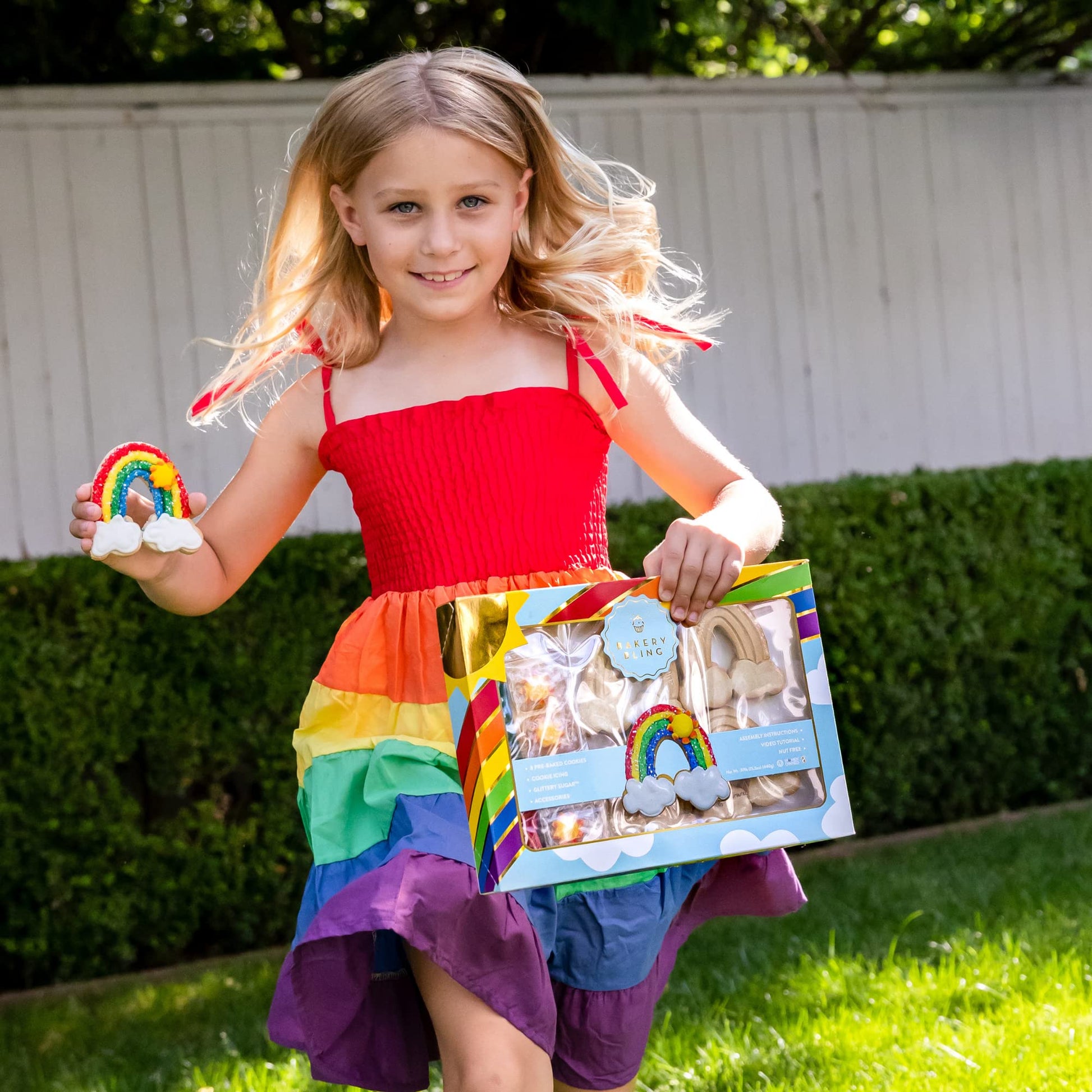 Q: What is included in the Cookie Decorating Kit?A: The Cookie Decorating Kit includes 8 pre-baked vanilla unicorn and bunny cookies, royal icing, pink and diamond glittery sugars, and edible decorations such as eyelash designs and bunny noses, providing all the essentials for a fun decorating experience.