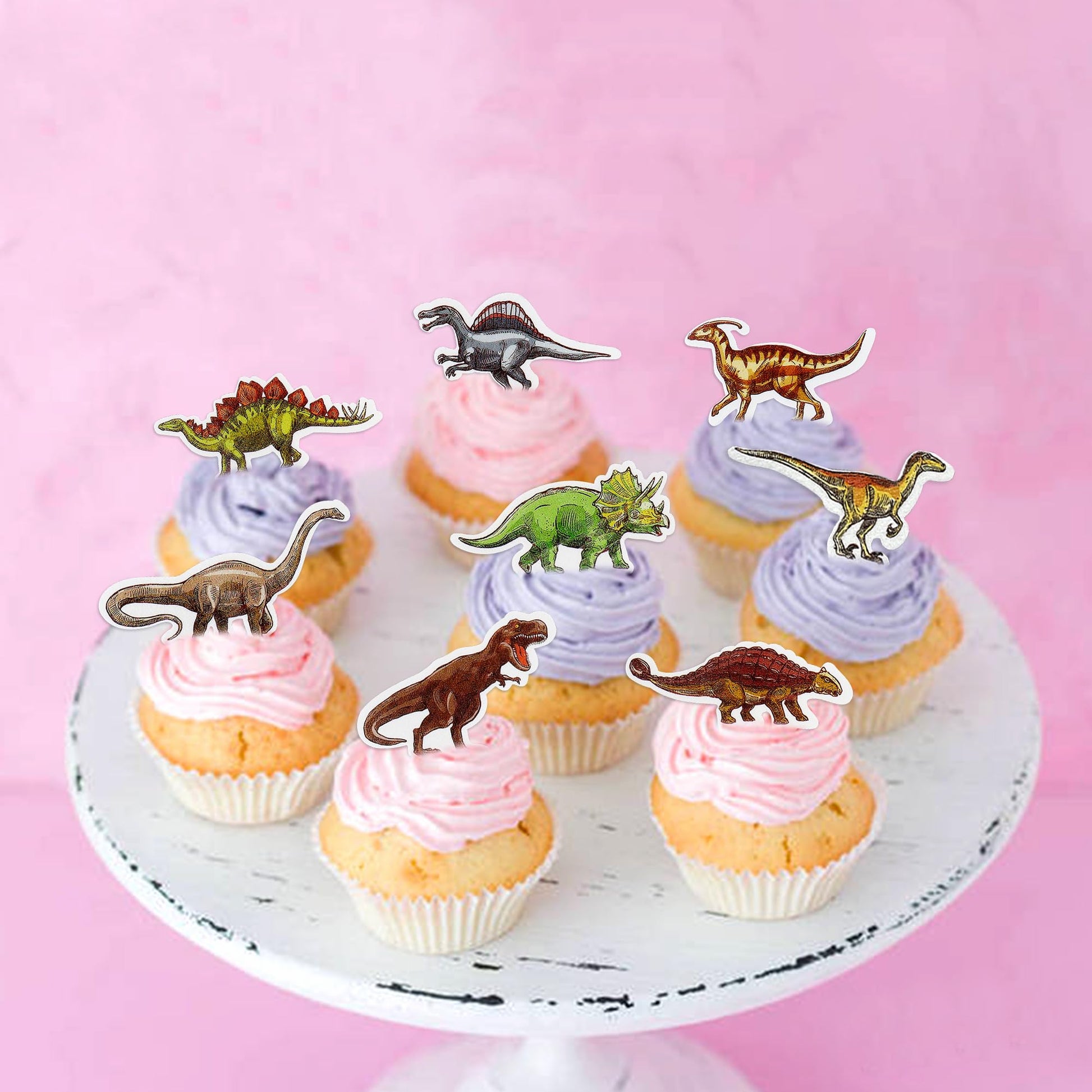 Q: Are these cupcake toppers suitable for children's birthday parties?A: Yes, these dinosaur cupcake toppers are perfect for children's birthday parties, especially those with a dinosaur theme. They add a fun and festive touch to any celebration.