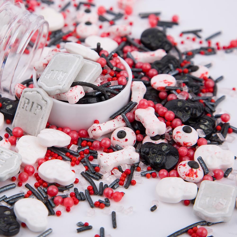 Q: Are these sprinkles suitable for kids' birthday parties?A: Yes, these Halloween-themed sprinkles are ideal for kids' birthday parties, making cakes and treats fun and festive.