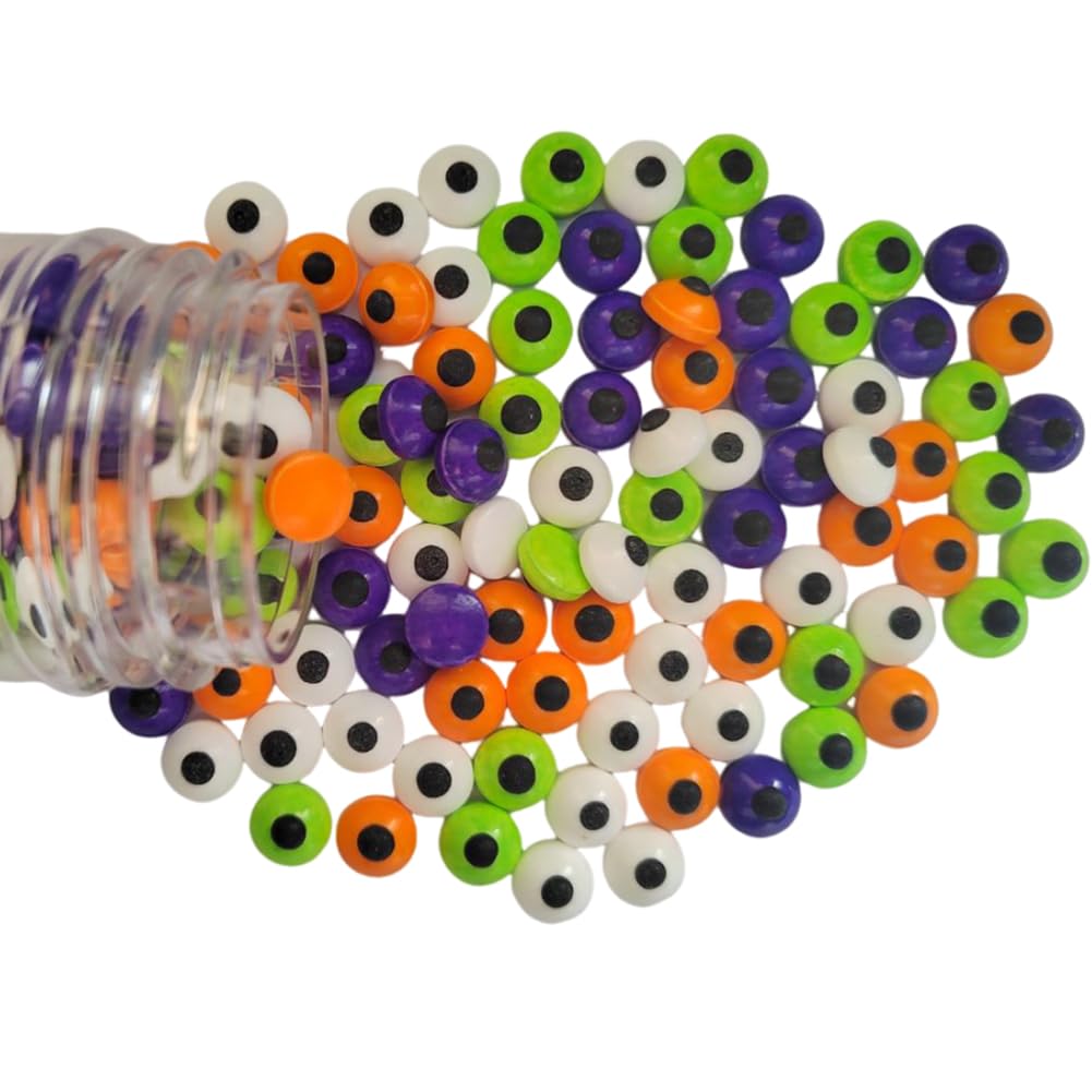 Q: What are Eastron Edible Candy Eyeballs made of?A: Eastron Edible Candy Eyeballs are made from high-quality edible ingredients safe for consumption. They come in four vibrant colors: Orange, Green, Purple, and White, making them perfect for decorating desserts.