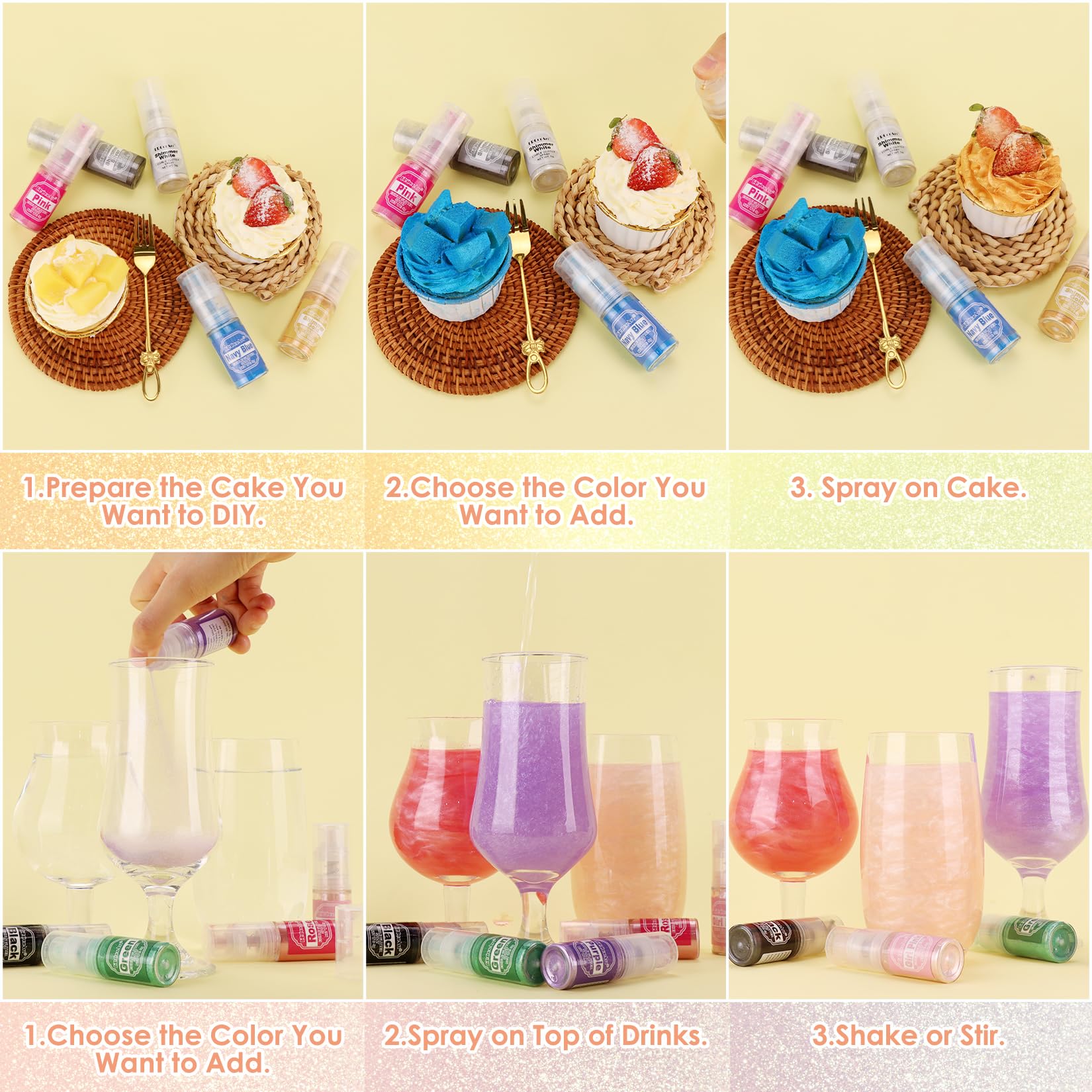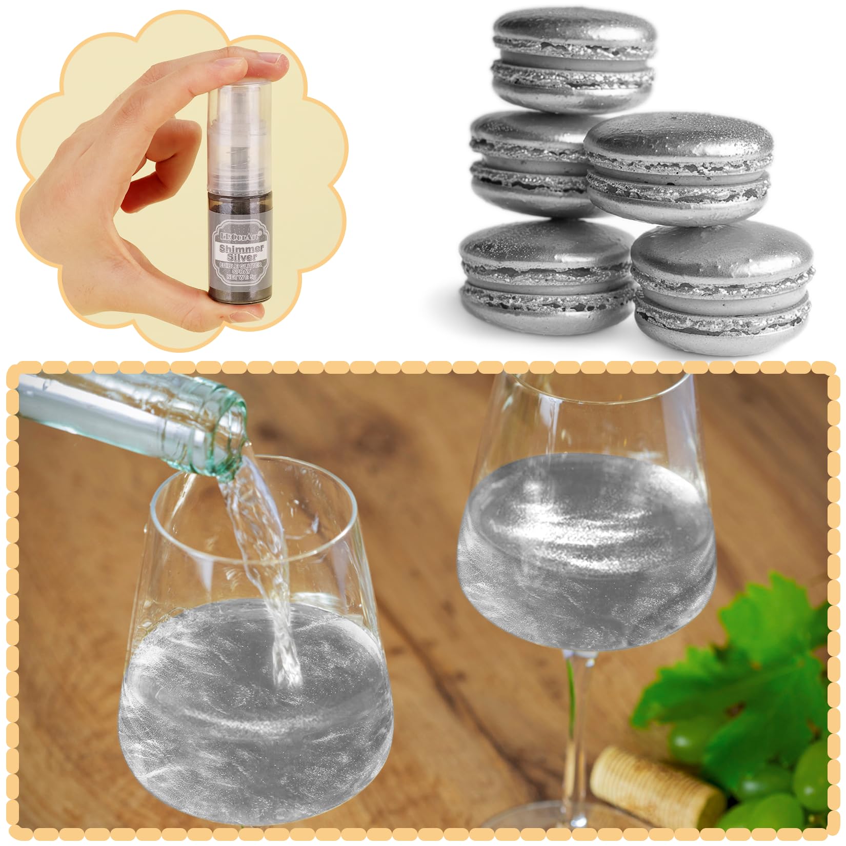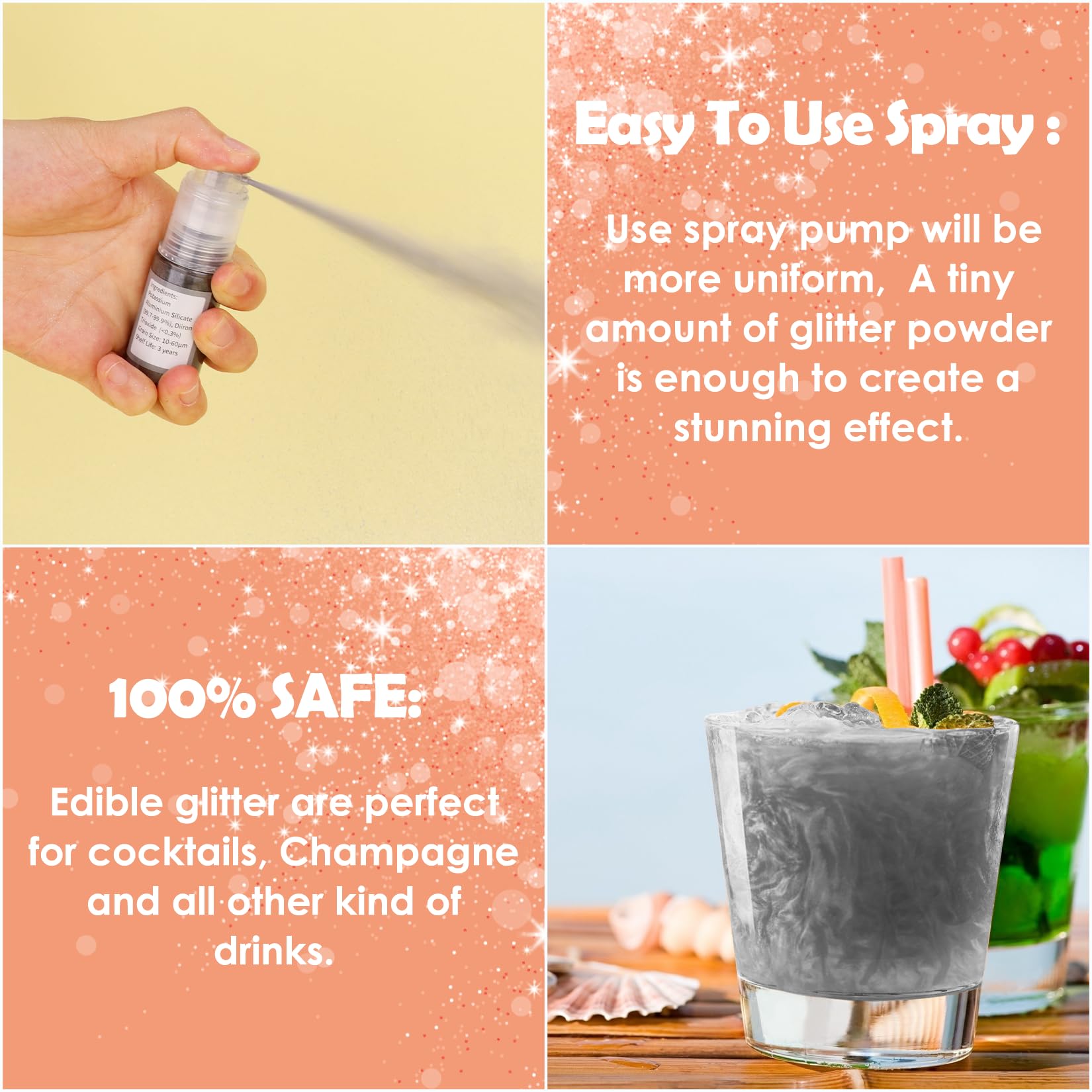 Q: Can I use this edible glitter spray on drinks?A: Absolutely! The Edible Glitter Spray is perfect for adding a shimmering effect to cocktails, champagne, or any beverage for special occasions.