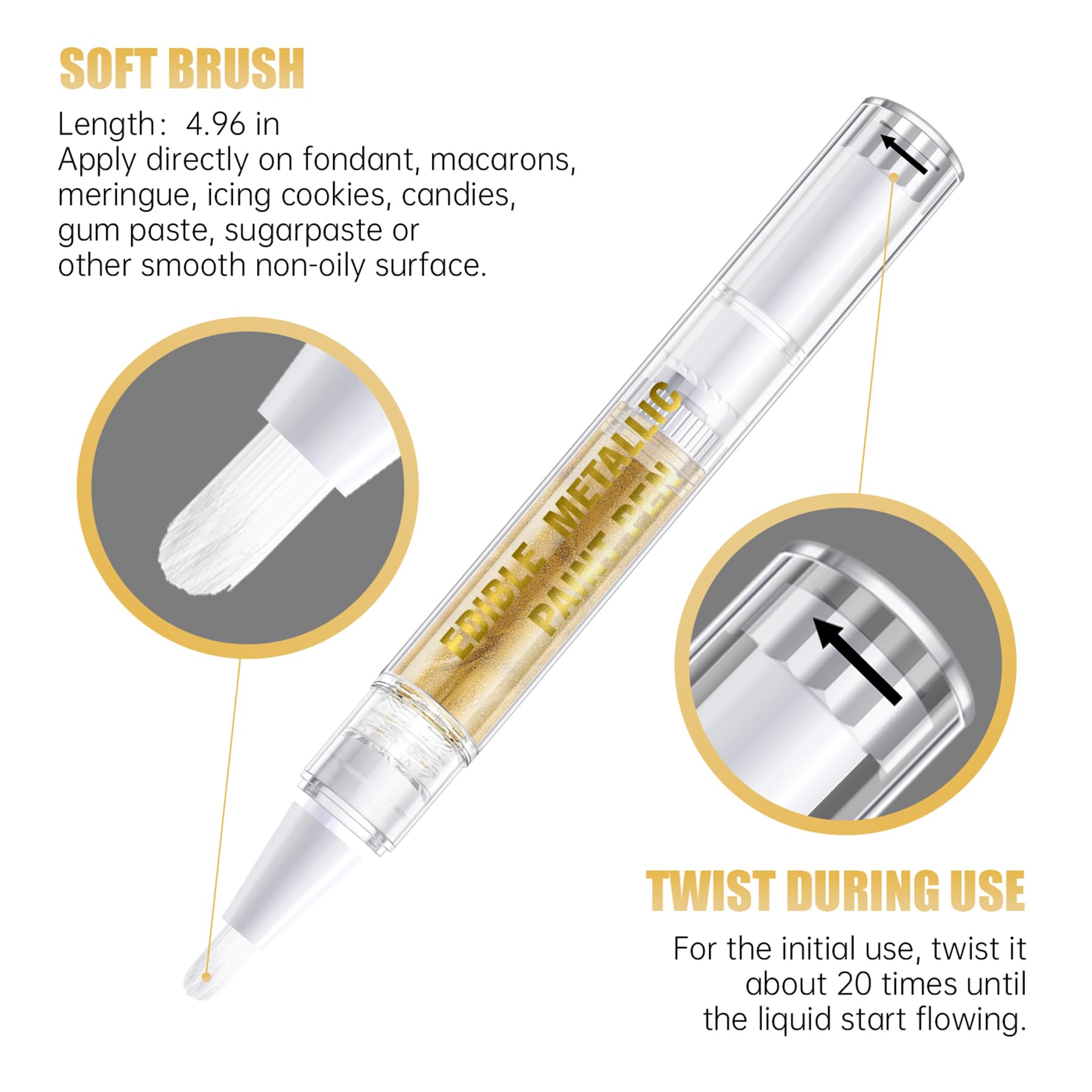 Q: Is this product safe for children and food?A: Absolutely! The Edible Metallic Glitter Paint is made from food-safe materials, making it perfect for use in baking and decorating cakes or treats for special occasions, including birthdays and holidays.